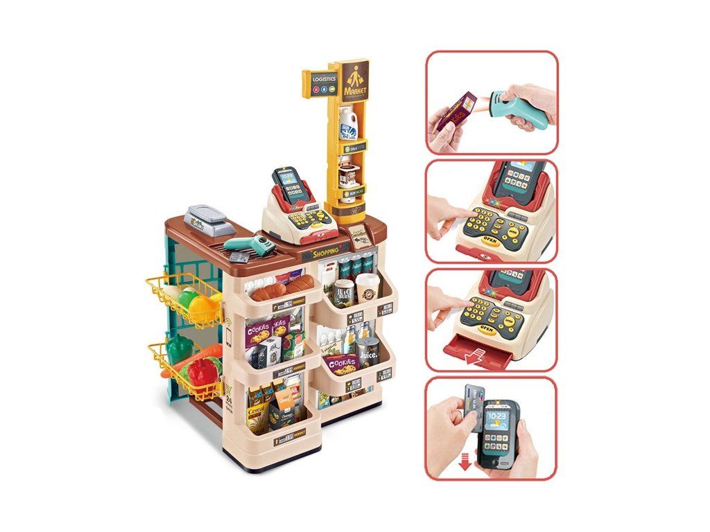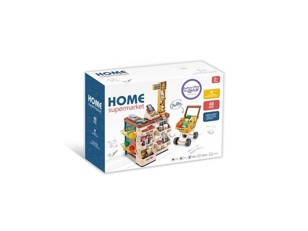 WOOPIE Supermarket s vozíkom Váha Pokladňa Skener + 48 Akc.