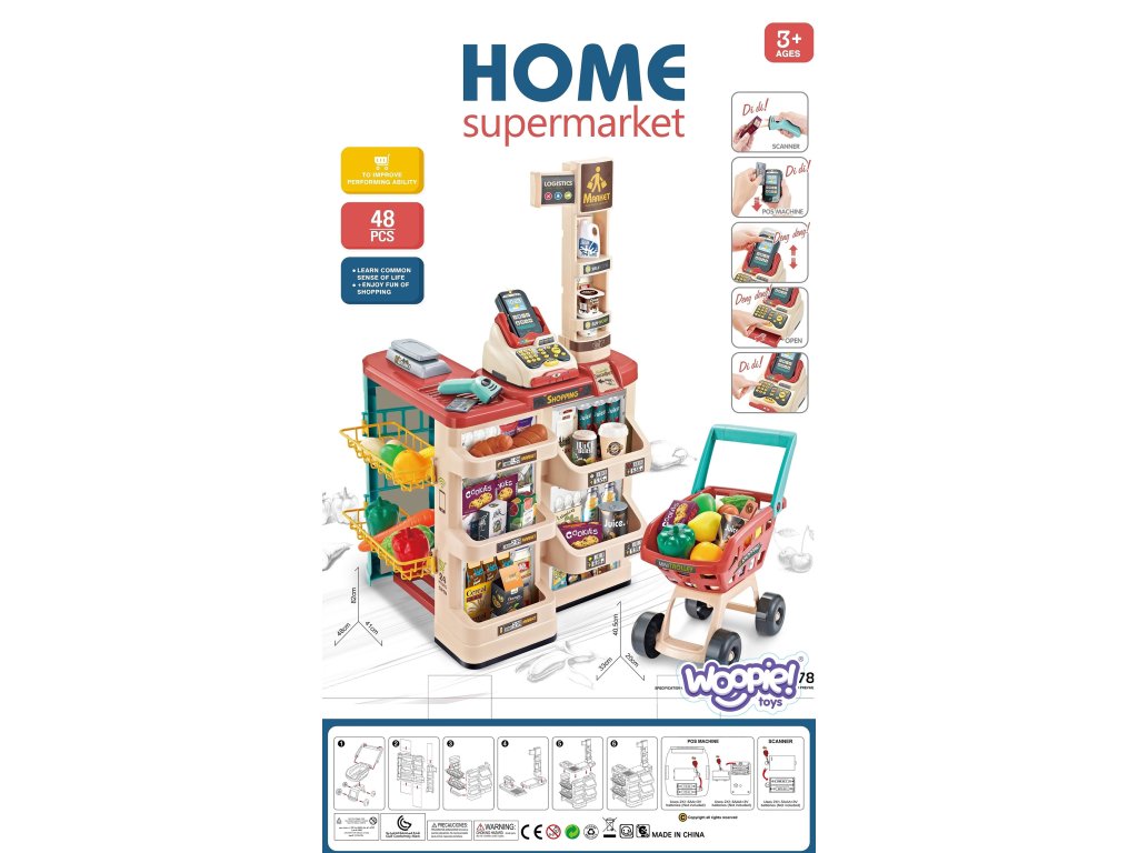 Supermarket s nákupným vozíkom smnožstvo ďalšieho príslušenstva, od značkyWoopie. Ideálne pre detistaršie ako 3 roky. Deti radi napodobňujú svojich rodičov vkaždodenné práce, preto je to ideálny set pre vaše dieťa a ďalšia šanca pre vaše dieťa, aby sa nielen skvelepobavil,ale niečo jevyučoval (hranie rolí sa nesmierne rozvíjapredstavy ikreativita batoľa). Obchod obsahujevšetky základné prvky pre vybavenie pracoviska malého predajcu vrátane:pokladňa s terminálom , hmotnosť, skener,platobná karta a množstvo potravín. Priložený nákupný vozík umožňujezábava s priateľmi bez ohľadu na to, kde a kedy!