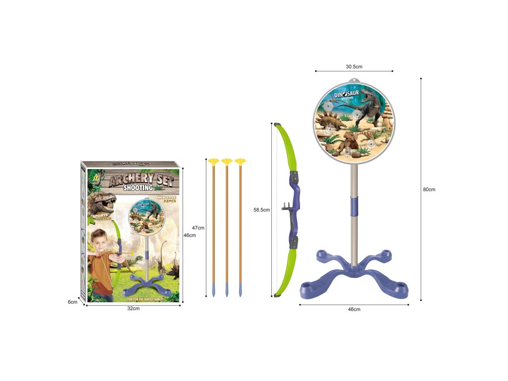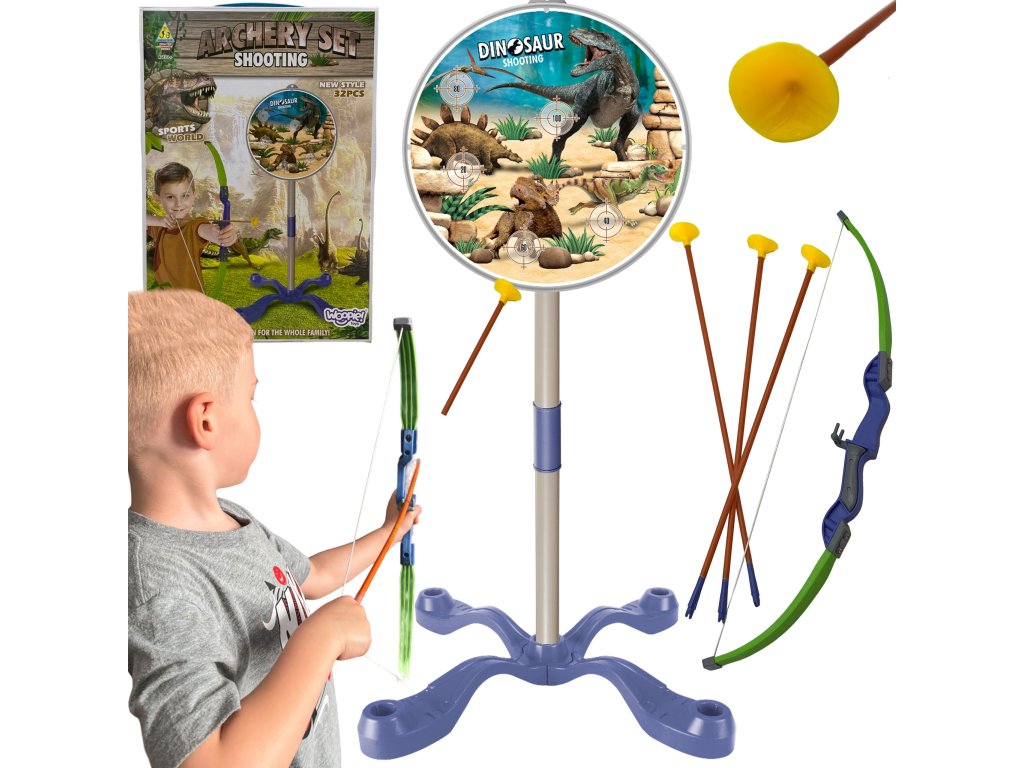 WOOPIE Súprava malého lukostrelca Dinosaury Luk Šípy Štít 32 ks