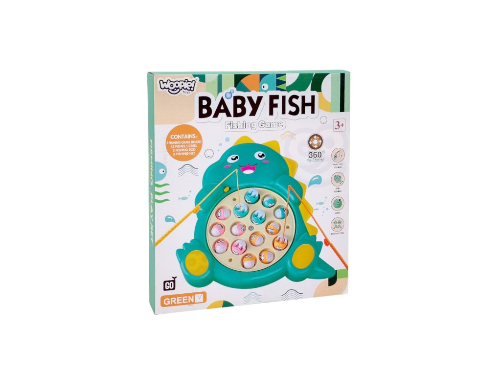 Súprava na chytanie rýb od značkyWOOPIE je interaktívna hra určená pre dve osoby. Je to súprava vybavená mechanizmom, ktorý sa pohybuje spolu s rybami. Hráči používajú rybárske prúty a ich cieľom je uloviť čo najviac rýb za určitý čas alebo kým sa nechytia všetky ryby. Táto hra naučí detizručnosť,rýchlosti ireflexpretože ryby sa môžu pohybovať náhodne a ich lov si vyžaduje presnosť a rýchlu akciu. Je to hra, ktorá môže poskytnúť veľa zábavy a vzrušenia deťom aj dospelým, podporuje súťaživosť a zdokonaľuje rybárske zručnosti.