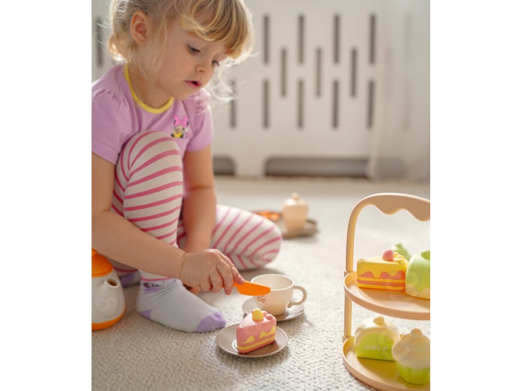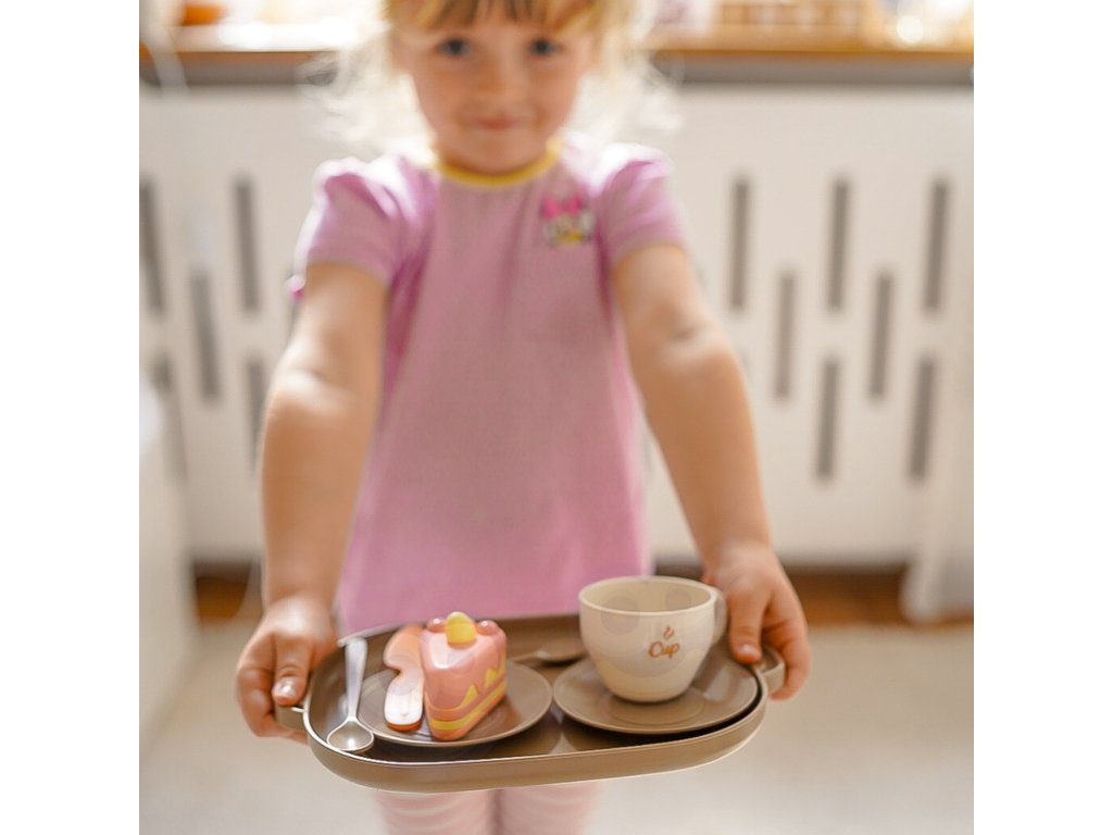 Drevené súprava na prípravu čaju a dezertov umožní vášmu dieťaťu prijímať hostí a podávaťčaj adezerty pre celú rodinu. Naučí vásspôsoby i zdieľanie zručností s ostatnými pri hre.