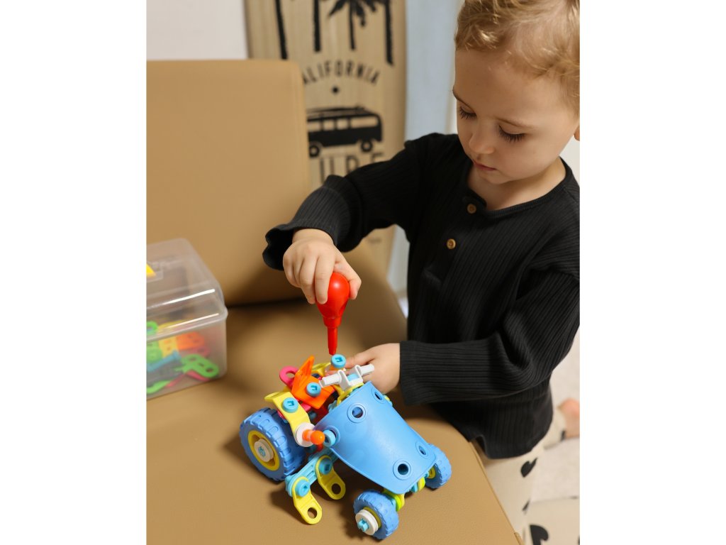 Hračky STEM učiť deti navrhovať a vytvárať modely a zároveň rozvíjať myslenie na základe príčin a následkov a priestorové plánovanie. Ideálne pre deti, ktoré potrebujú viac času na učenie, pretože náročnosť môžete prispôsobiť ich schopnostiam. Hra s kockami podporuje koordináciu, posilňuje svaly rúk a zlepšuje presnosť.