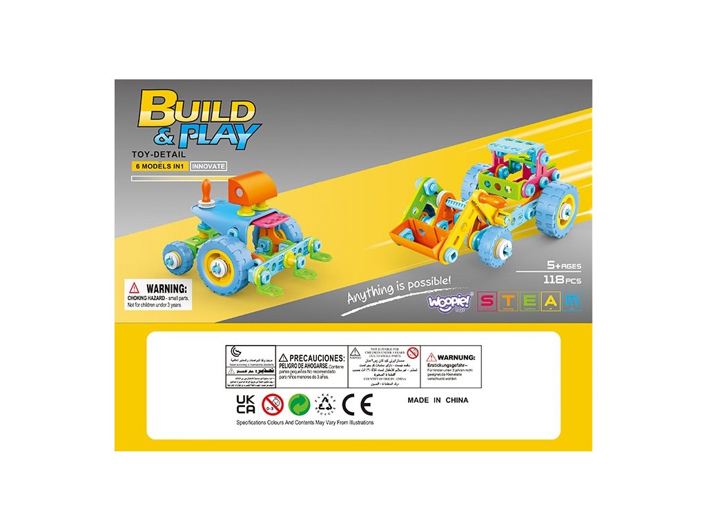 Stavebnica Vozidlá 6v1od spoločnostiWOOPIE sú skvelým nápadom na kreatívnu hru - efektívne zamestnávajú na dlhé hodiny arozpútať absolútnu sopku kreatívnych nápadov! Zvýšeniepredstavivosť imanuálne zručnosti vášho dieťaťa vďaka jedinečnému stavebné bloky! Súprava obsahuje 118 prvkov, čo umožní vytvárať rôznevozidláz toho traktor, rýpadloalebo motokáry . Bez ohľadu na pohlavie je táto hračka ideálna pre chlapcov aj dievčatá. Rozvoj kreativity i manuálne zručnostiumožňuje každému dieťaťupreskúmajte svet stavebníctva i dizajn spôsobom, ktorý poskytujeveľa spokojnosti a radosti.