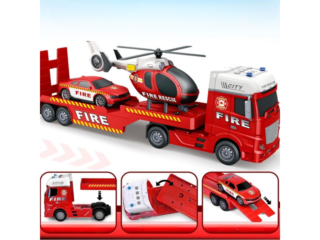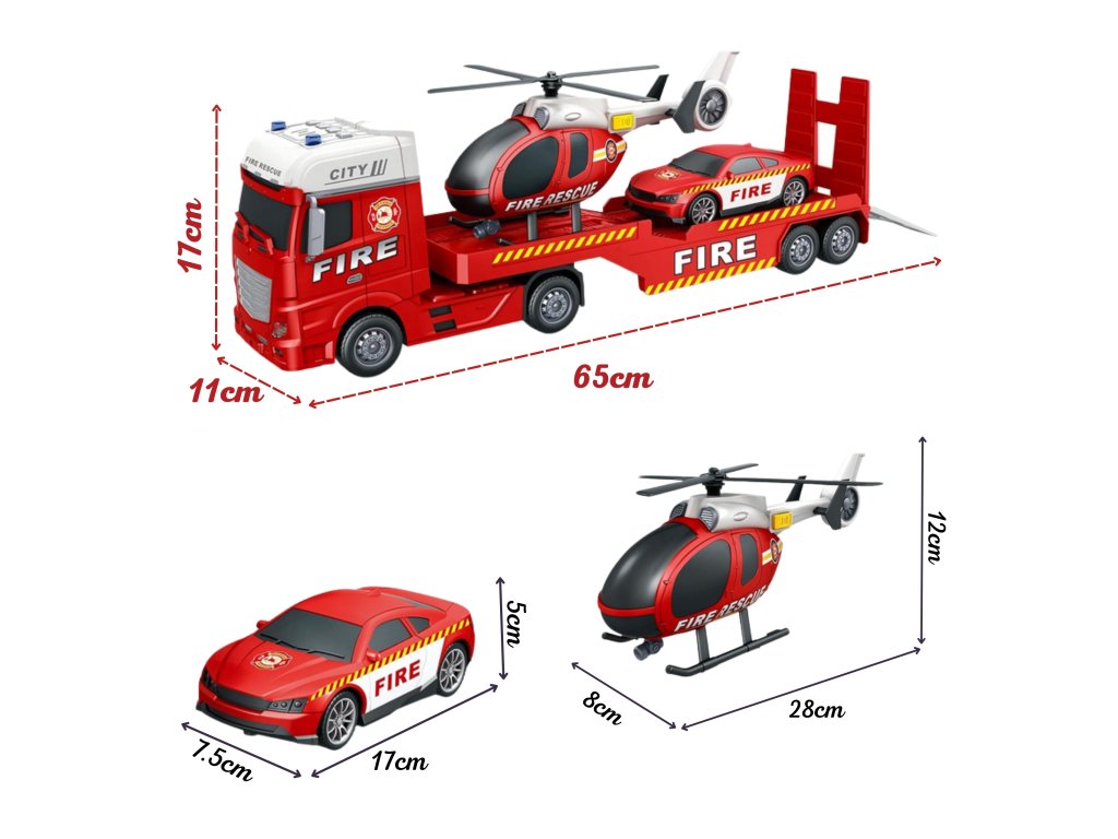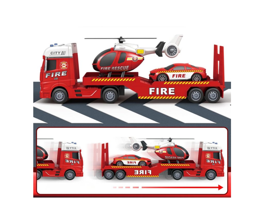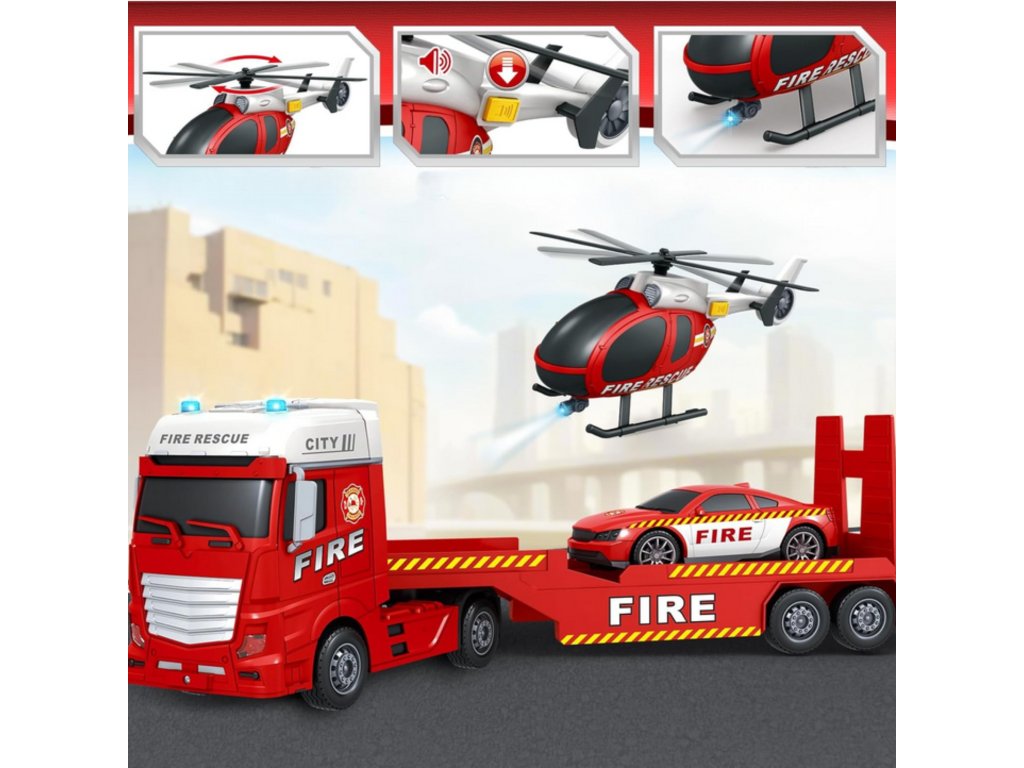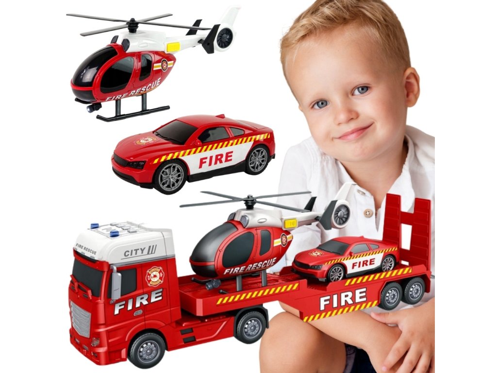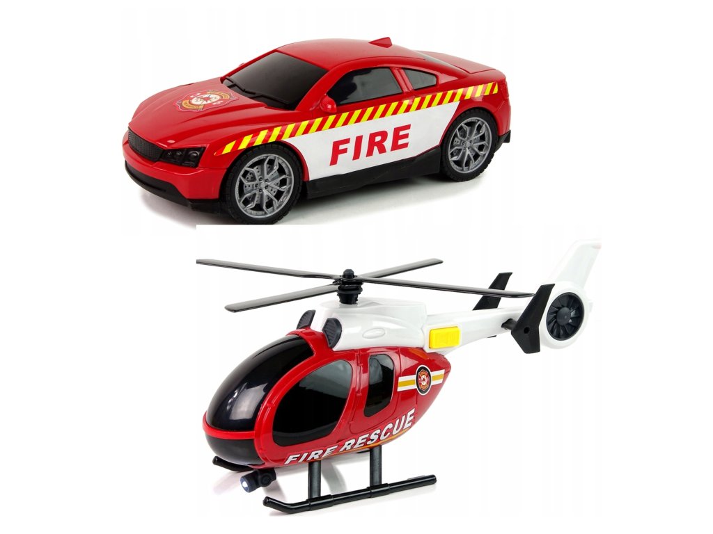WOOPIE Súprava vozidiel Hasičské auto Vrtuľník Auto Zvuk Svetlá