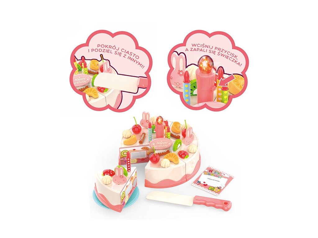 Narodeninová torta od renomovanej značkyWoopie je ideálny na stretnutia s priateľmi. Súprava bude dokonalým atribútom pre každú malú hostiteľku alebo každého malého hostiteľazorganizovať nezabudnuteľnú párty. Sada obsahuje krásne zdobený koláč,ktoré môžeme rozrezať na 6 kusov a pohostite svojich hostí. Dieťa môžeozdobte tortu podľa vlastných predstáv nápady vďaka priloženým sviečkam, dekoráciám v tvare zajačika a ovociu. V strede torty sa nachádzasviečkaktoré po stlačení tlačidlasa rozsvieti. S takouto sadou bude zábava nekonečná!
