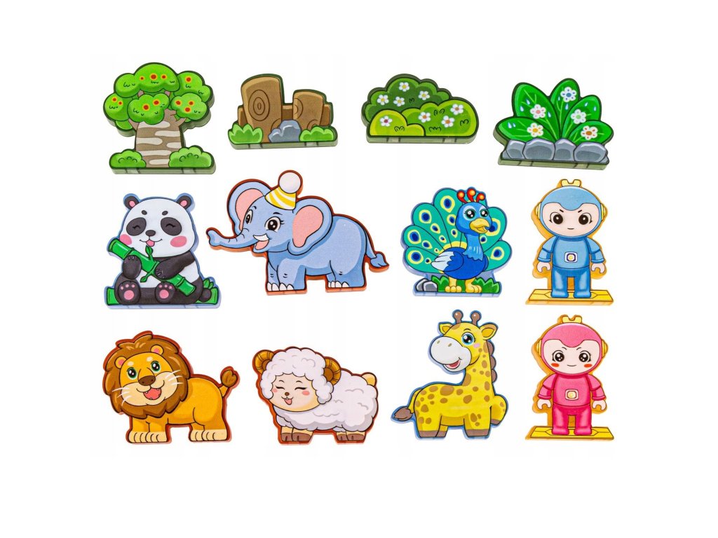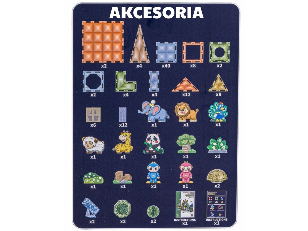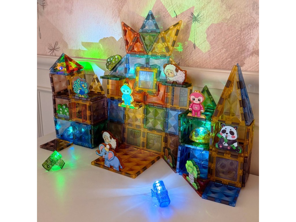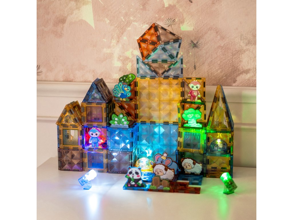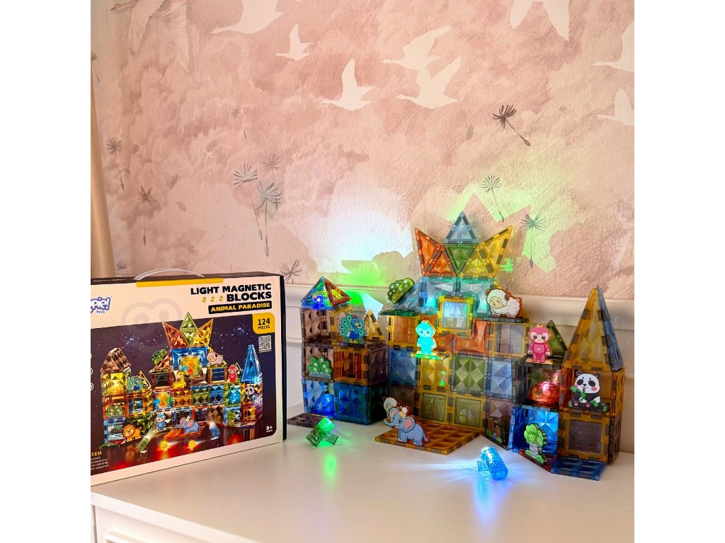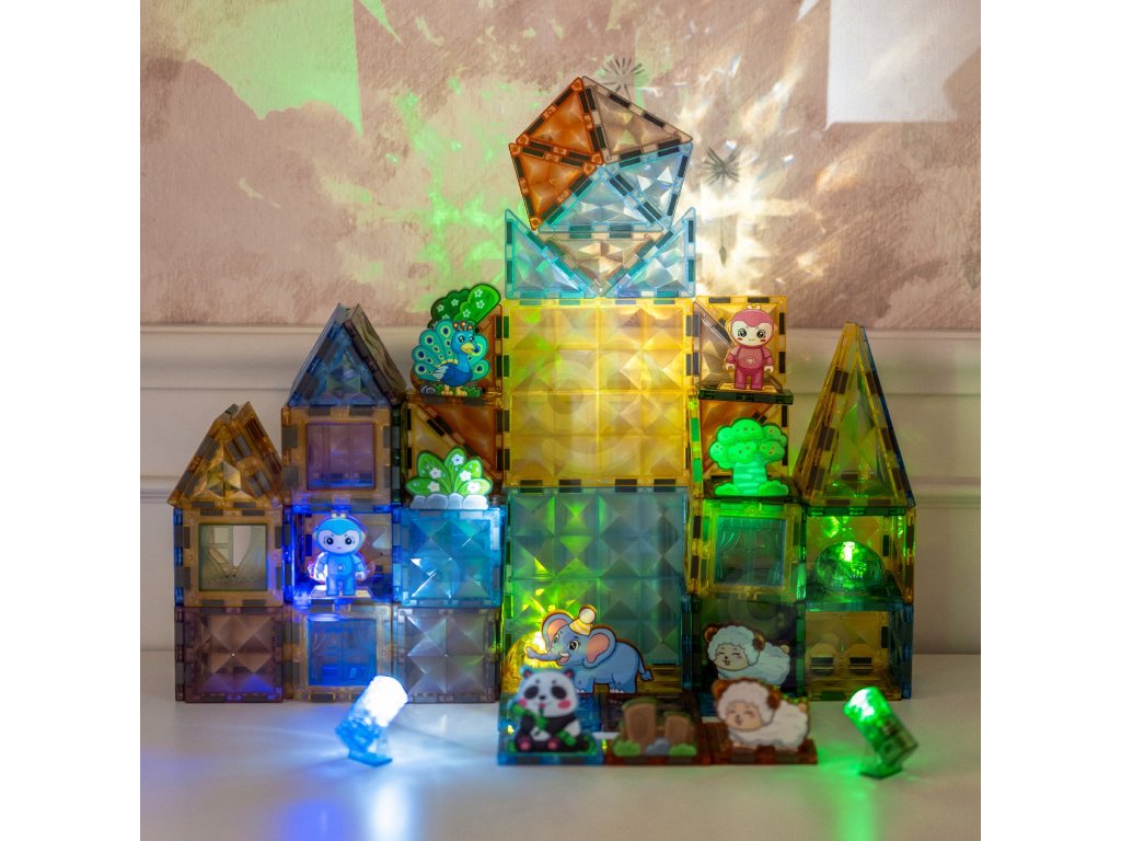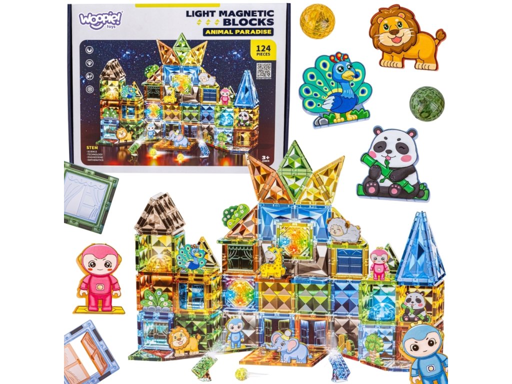 WOOPIE Svietiace 3D stavebné magnetické kocky Svet zvierat 124el.