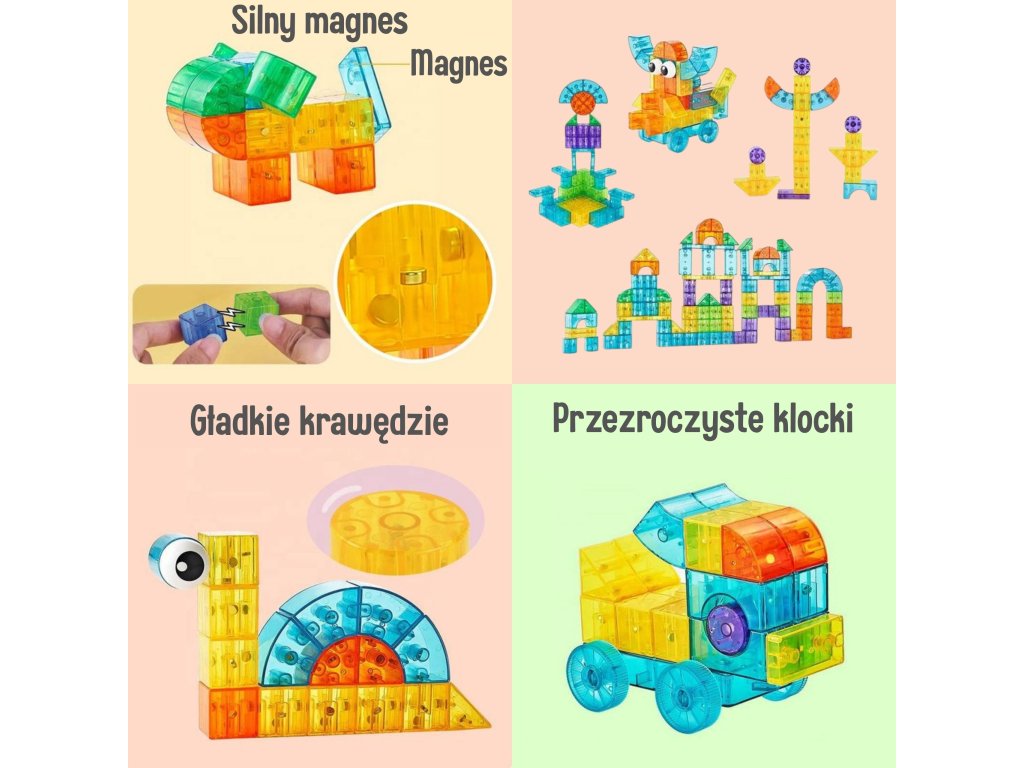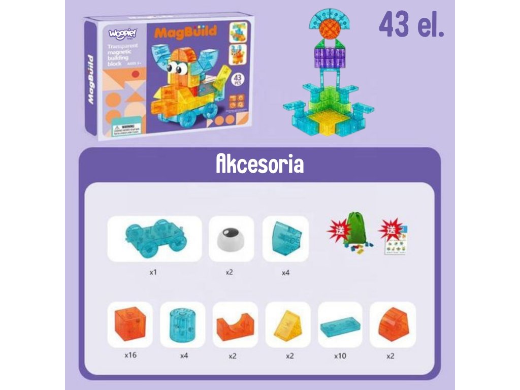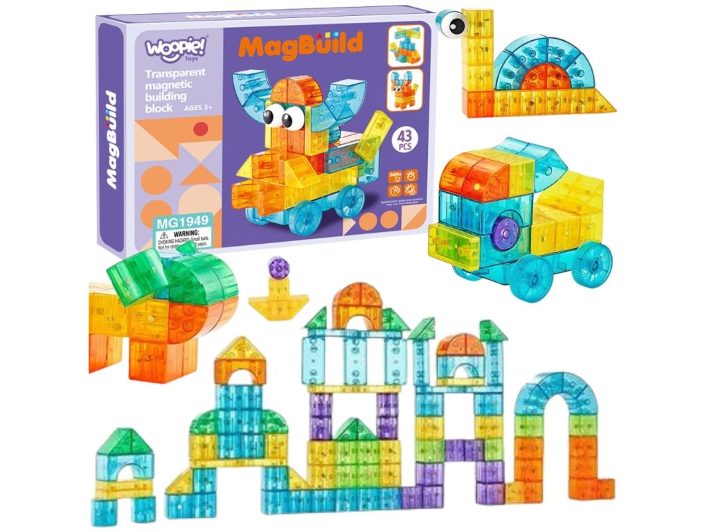 Magické priehľadné magnetické bloky podľa značkyWoopie prenesie dieťa do sveta stavania plného farieb, svetla a pohybu - od hravých vozidiel a zvieratiek až po nápadité stavby a zakrivené dráhy, ktoré sa zostavujú "samé" vďaka skrytým magnetom a ľahkým, hladkým dielikom, ktoré sú šetrné k malým rúčkam.