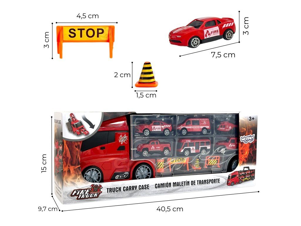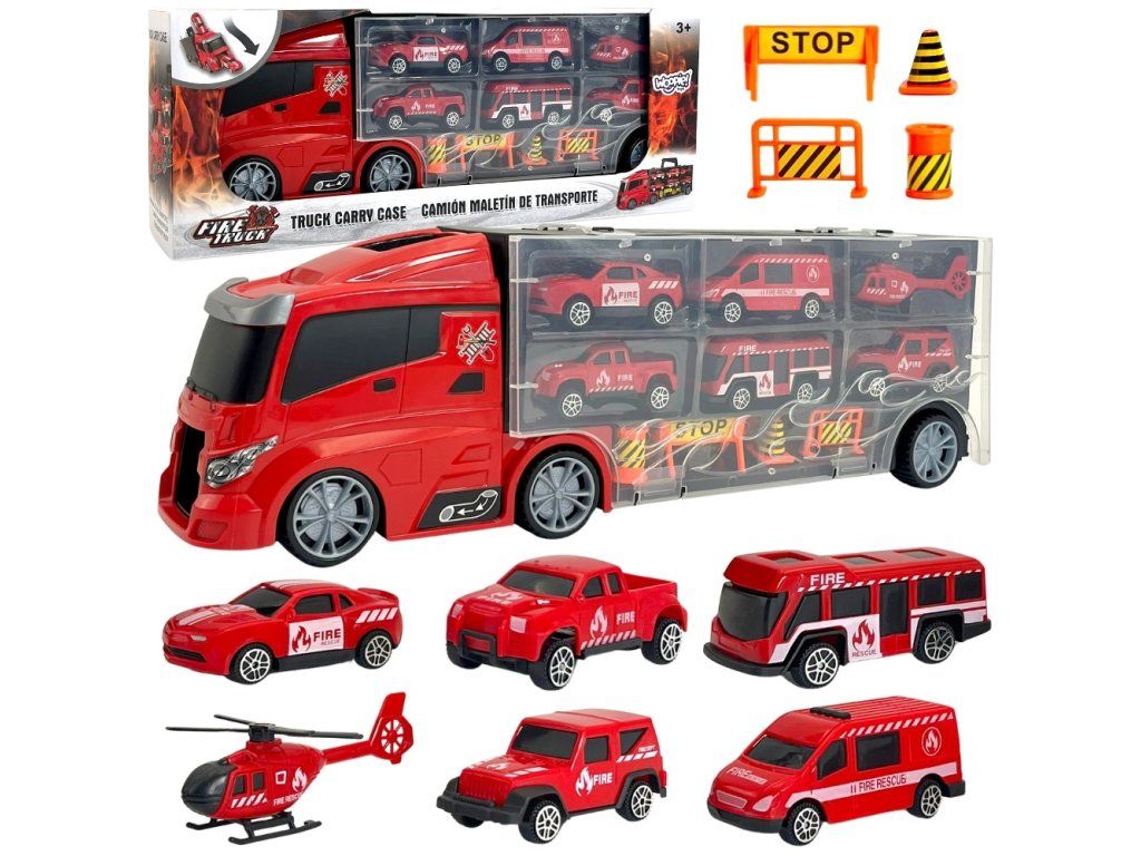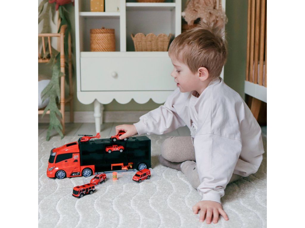 Hasičské auto 3v1od značkyWOOPIE Perfektná hračka pre každého malého fanúšika vozidielStráže Hasičský zbor,doprava a akcia!Súprava pozostáva zveľký príves TIRdo ktorého sa zmestí až4 hasičské vozidlá, vrtuľník a ďalšievýstražné znameniaktoré zvyšujú realistickosť hry. Vďaka odpaľovaciemu zariadeniu umiestnenému napríves, deti môžuvytiahnuť autá ispustenie na rôzne vzdialenosti. Príves máaž 40 cm dlhé, čo ju robí dostatočneveľký, aby sa doň zmestili všetky vozidlá i príslušenstvo. Súprava dokonalerozvíja predstavivosť dieťaťa a podporuje vytváranievlastné herné scenáre. Vďakavýstražné znamenia sa môžu naučiť základyzabezpečenie na cestách, ktoréhra je vzdelávacia a zároveň vzrušujúca.