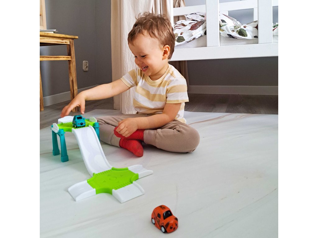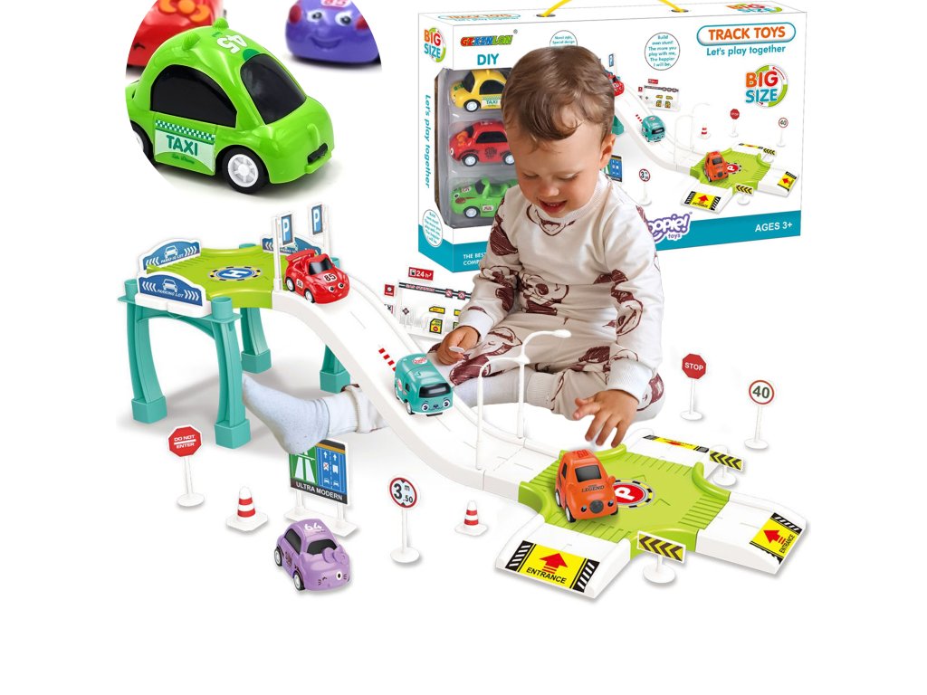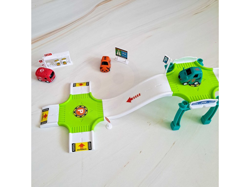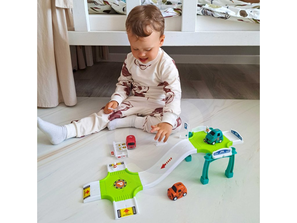 Autodráha od značkyWOOPIE poteší každé batoľa. Batoľa môže jazdiť3 autá nahor po strmej ceste a zaparkovať na rovine alebo natankovať auto načerpacia stanica. Okrem toho sa v mnohýchdopravné značkypríslušenstvo a vzhľad tratí skutočne prispievajú k zábave. Príslušenstvo a vzhľad tratí sú naozajrealistické. Dieťasa učí základy dopravy, ktoré stimulujú jehoinformovanosť do budúcnosti. Hračka, ktorá učí hrou! Dráha zaručuje hodiny zábavy!