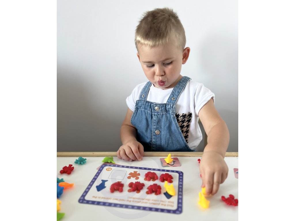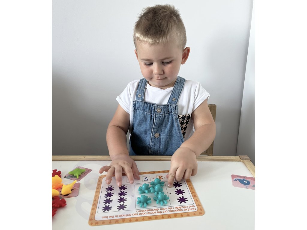 - - úlohou batoľaťa je umiestniť správny počet figúrok a spočítať ich,