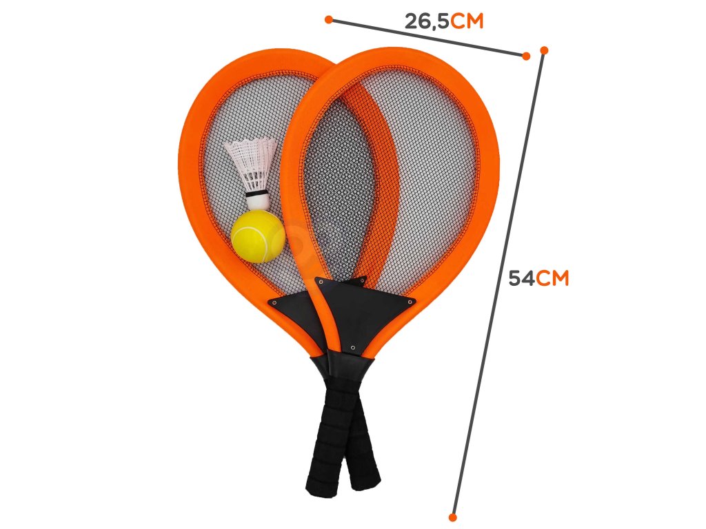 SúpravaRaketaod značkyWoopie určitebude podporovať deti a dospelí trávia časaktívne vonku. Hranie tenisu alebo bedmintonu rozvíjakapacity motorické zručnosti tzv. "veľké motorické zručnosti". Rakety majúpohodlné ideálna rukoväť prerukoväte deti a vďaka flexibilnej sieťovine umožňujúďalšie vplyvy. Súprava obsahujelopta.