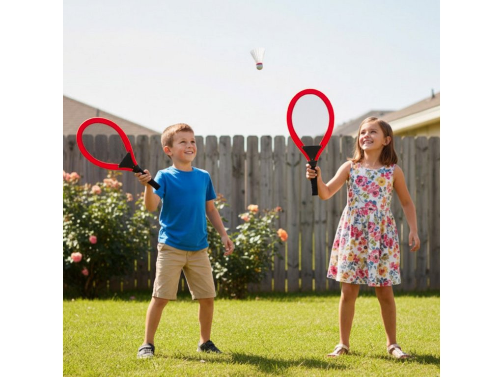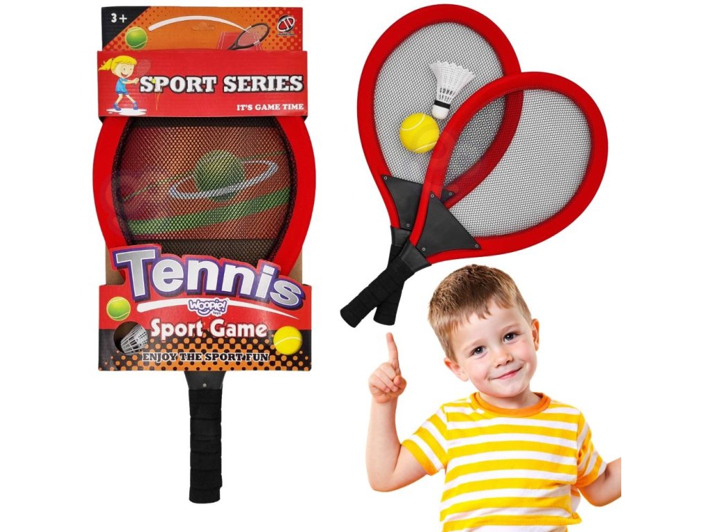 SúpravaRaketaod značkyWoopie určitebude podporovať deti a dospelí trávia časaktívne vonku. Hranie tenisu alebo bedmintonu rozvíjakapacity motorické zručnosti tzv. "veľké motorické zručnosti". Rakety majúpohodlné ideálna rukoväť prerukoväte deti a vďaka flexibilnej sieťovine umožňujúďalšie vplyvy. Súprava obsahujelopta.