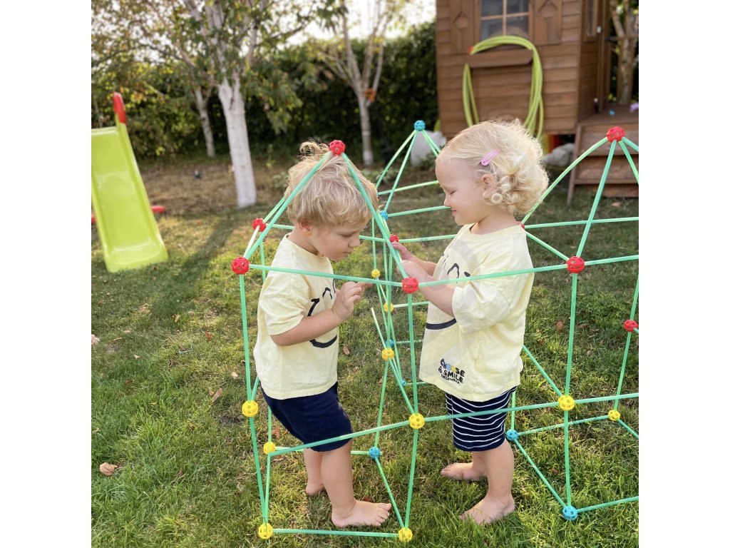 Stavebnicaod značky WOOPIEprebudí vo vašom dieťati veľkého staviteľa! Sada obsahuje128 prvkov vrátane spojovacích rúrok a materiálu na zakrytie konštrukcie. Komponenty sa dajú kombinovať dopriestorová výstavba ako stan, potiahnutý látkou. Súprava umožňuje kreatívnu hrudomov ako ajvonku.