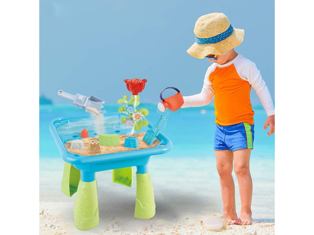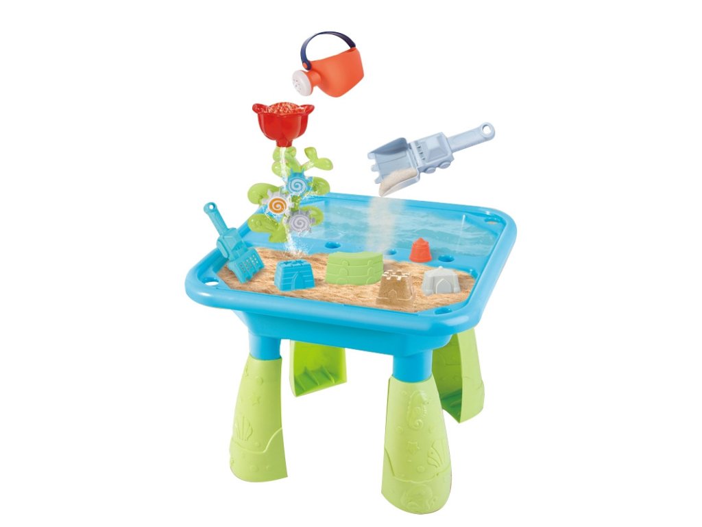 Vodný stôl 2v1 Pieskovisko od značkyWOOPIE je ideálna hračka na hranievodai piesok. Súprava obsahuje14 príslušenstvo: 4 formy, kanva na zalievanie, mlynček a 2 lopatky. Stôl má2 dutiny, ktoré sa naplnia vodou a pieskom, čo umožňuje hru kdekoľvek. Dieťa môže naliať vodu do mlyna a sledovať, ako sa voda pohybuje. Súprava je navrhnutána hranie v interiéri aj exteriéri.Ideálne na hranie doma, na pláži alebo na pieskovisku.