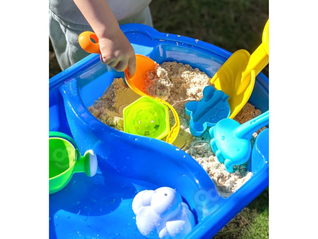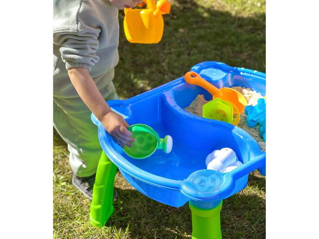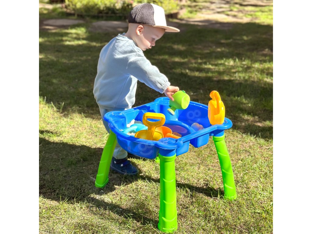 Stôl s pieskom od značkyWOOPIE je ideálna hračkana hranie s vodou a pieskom. Súprava obsahuje9 príslušenstvostôl je rozdelený na dve časti, jednu na nalievanie vody a druhú na sypanie piesku. Stôl je rozdelený na dve časti, do jednej môžete nalievať vodu a do druhej sypať piesok. Súprava je navrhnutá na hranie v interiéri aj exteriéri. Ideálne na hranie doma, na pláži alebo na pieskovisku.