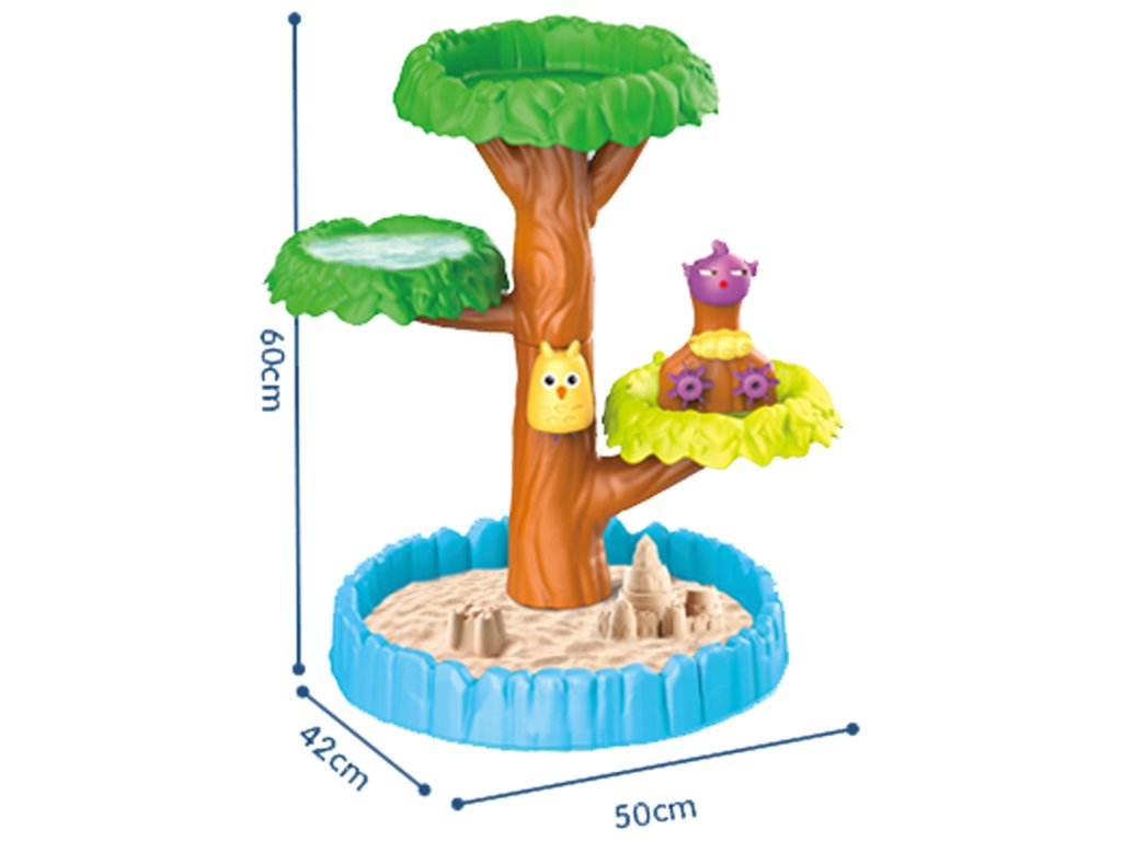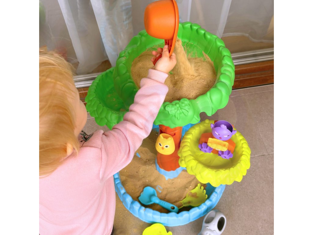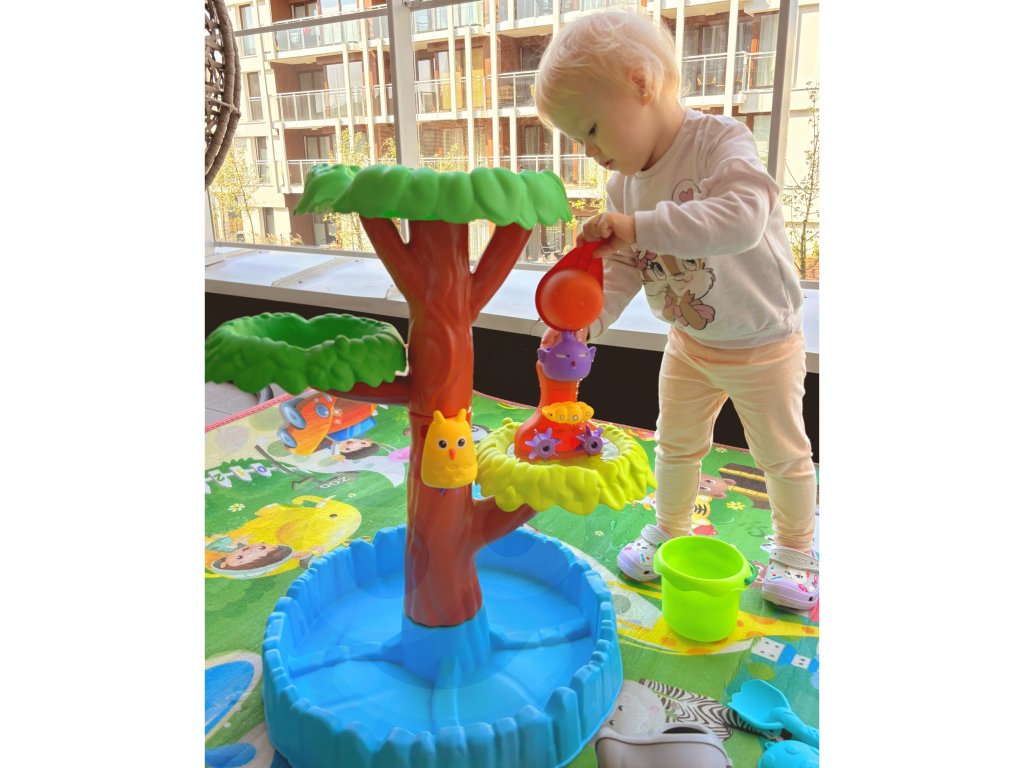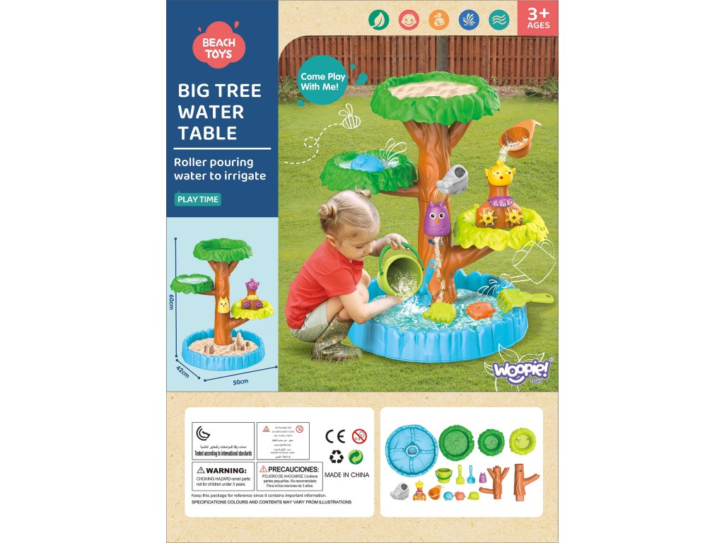 Tabuľka vody4 úrovne v tvare stromuod značkyWOOPIE je ideálny na hranie svodai piesok. Súprava obsahuje všetko, čo potrebujete pre nekonečnú zábavu - skladacia stôl, vedro, fľaša na polievanie, 3 konzervy, 2 lopaty, kanva na polievanie. Vaše dieťa bude môcť naliať vodu do rôznych zvieratiek, aby saozubené kolesá sa začnú otáčať, čím sa ešte viac zvýši zábava v už aj tak skvelej hre. Hračka je navrhnutáhrať sa vonku: na pláži alebo v pieskovisku.