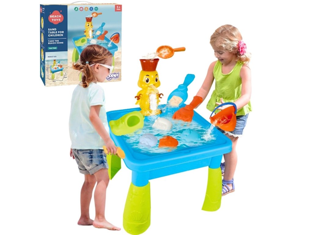 WOOPIE Vodný stôl 2v1 Pieskovisko Kačica Kačica Vodopád 9 ak.