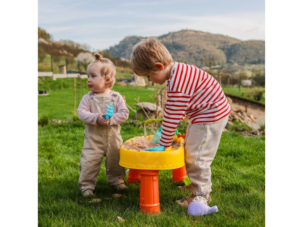 Stôl s pieskom od značkyWOOPIE je ideálna hračka na hranievoda a piesok. Súprava obsahuje8 príslušenstvo: 3 formy, ryba, kanva na polievanie, nádoba s držadlom, hrable a lopata. Stôl mávolantktoré môžete otáčať a cítiť sa ako skutočný pirát. Súprava je navrhnutána hranie v interiéri aj exteriéri. Ideálne na hranie doma, na pláži alebo na pieskovisku.
