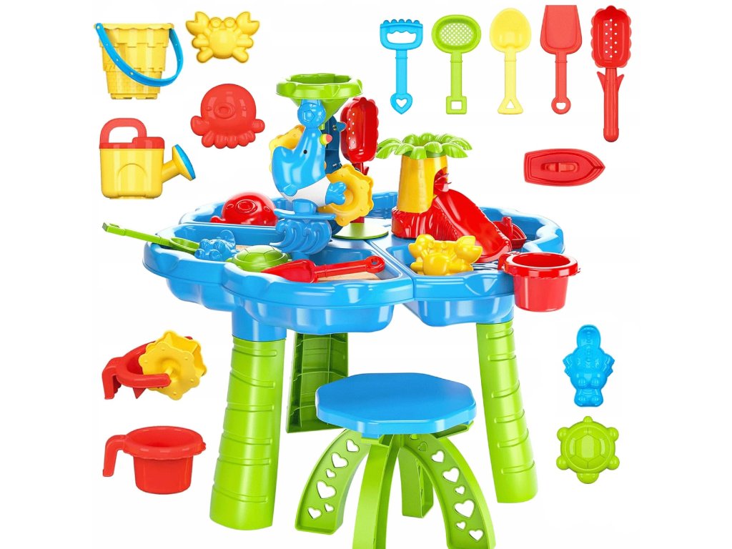 - - 1 x stôl s vodou a pieskom s priehradkami