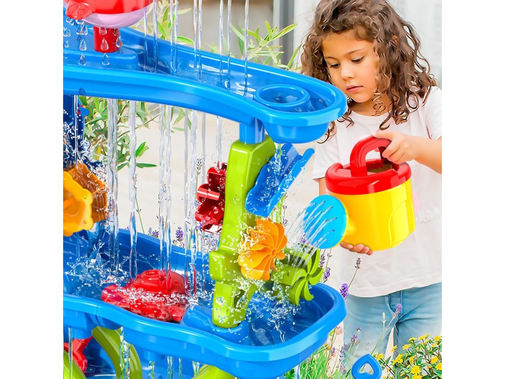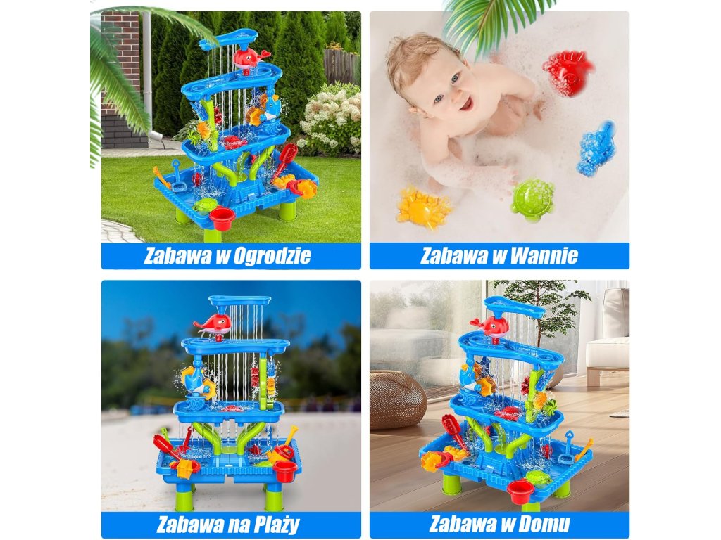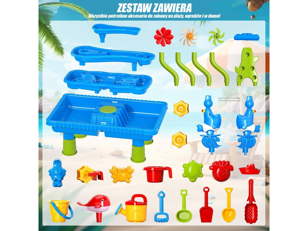 - - Multifunkčnosť 4v1: Stôl do vody, pieskovisko, plážový set a hračka do kúpeľa