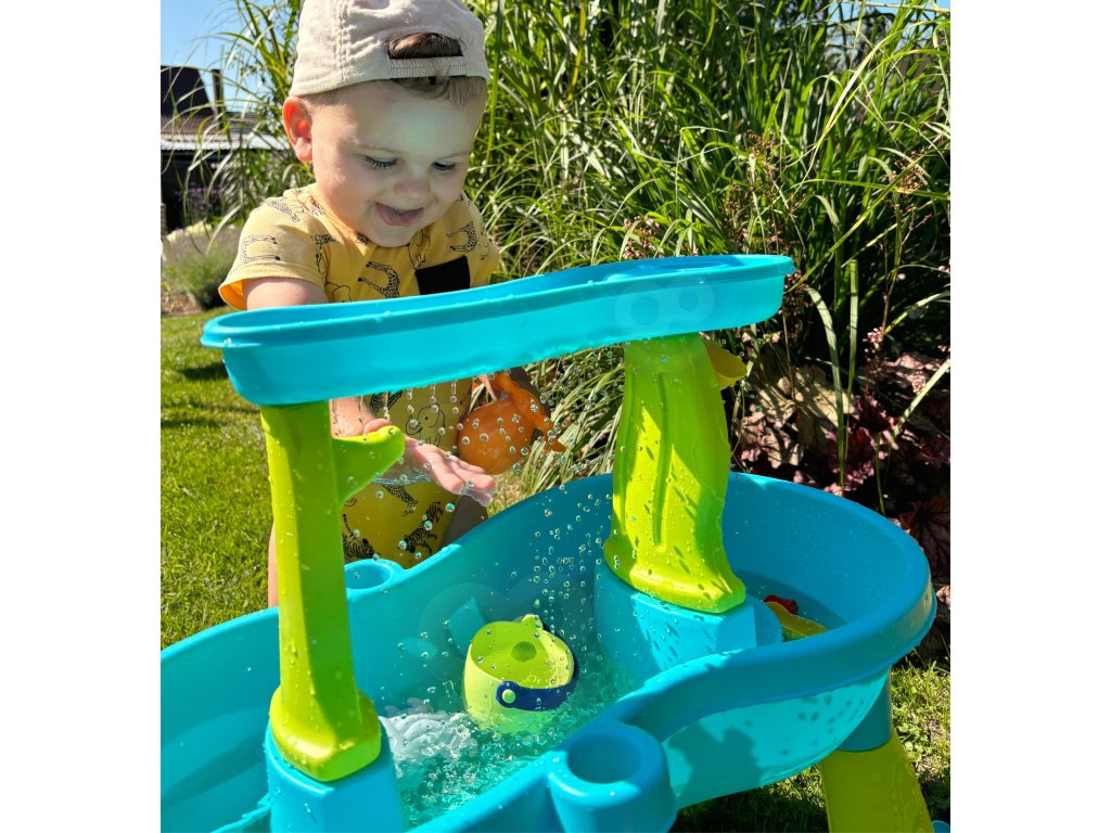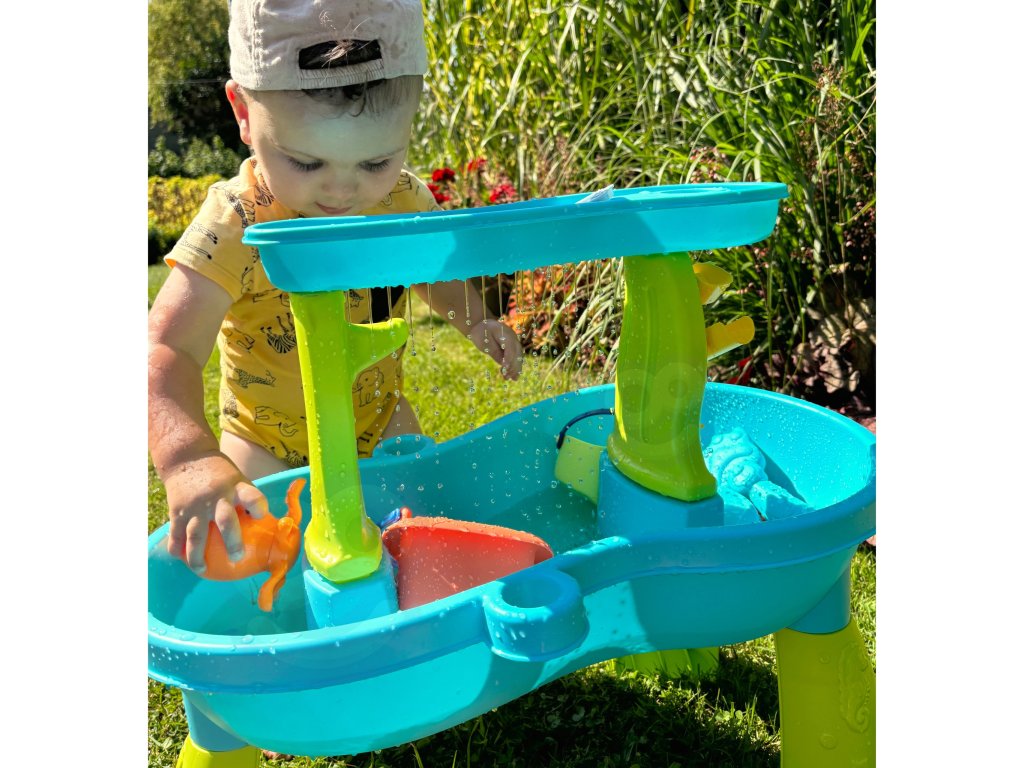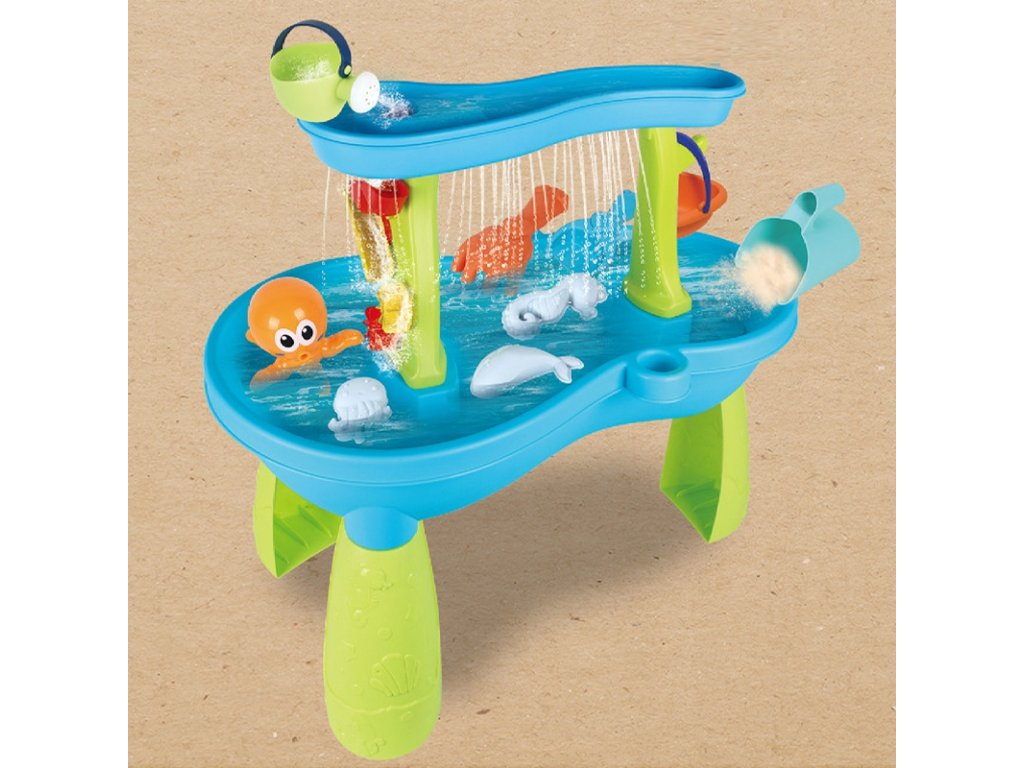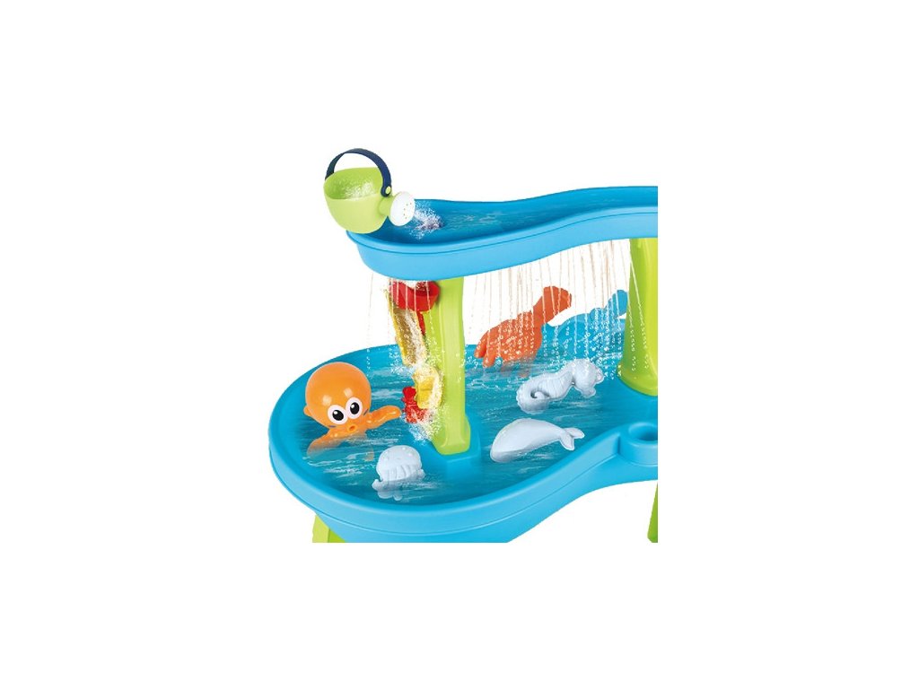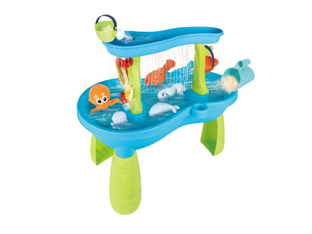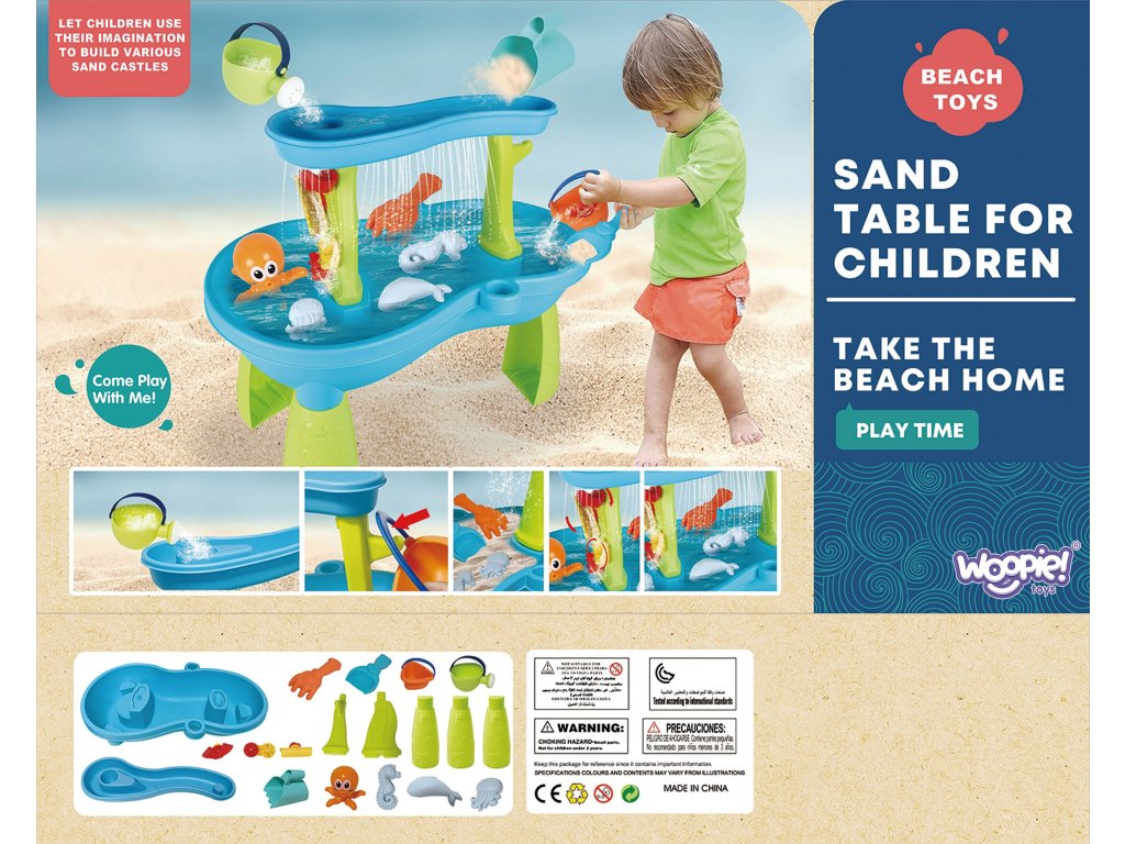 Vodný stôl Octopus od značkyWOOPIE je ideálna hračka na hranievodai piesok. Súprava obsahuje18 príslušenstvo: 3 formičky, chobotnica, kanvička, košík, nádoba na naberanie piesku a 2 lopatky. Dieťa môže naliať vodu do hornej časti stola, aby voda unikala cez otvory v spodnej časti alebo stekala po mlynčekoch. Súprava je navrhnutána hranie v interiéri aj exteriéri.Ideálne na hranie doma, na pláži alebo na pieskovisku.