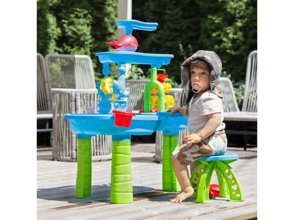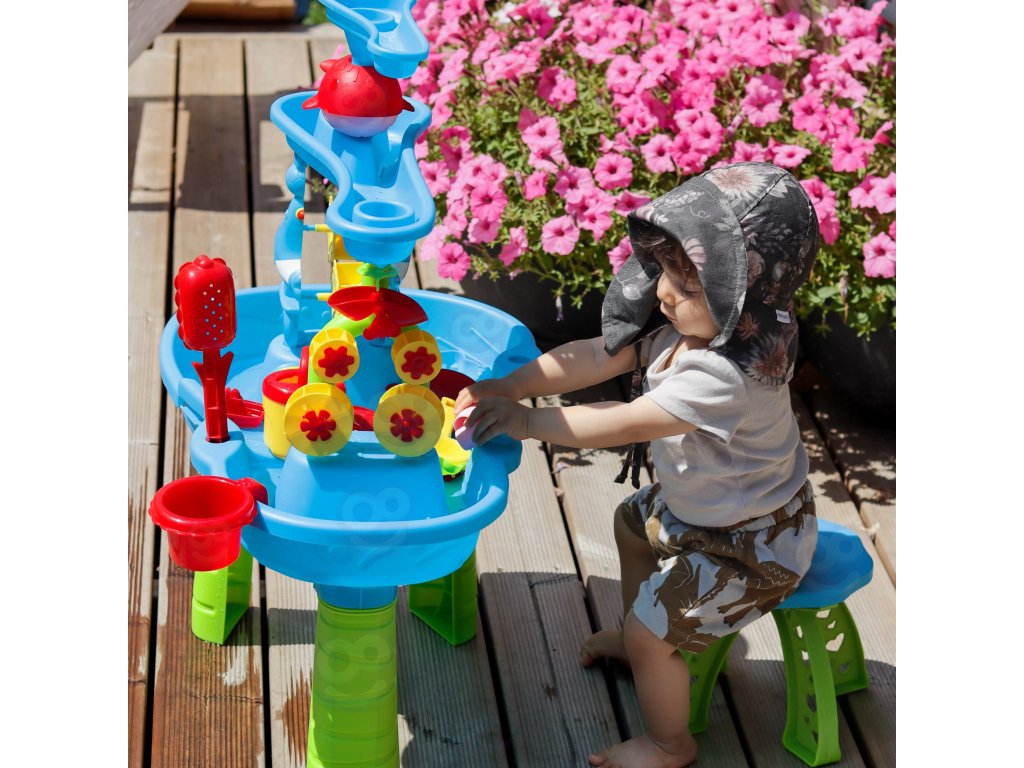 Nezvyčajné stôl s vodou od značkyWOOPIE je ideálny spôsob, ako sa zabaviť prostredníctvompočas celého roka, bez ohľadu na počasie. Je to nielen fantastická zábava počas horúcich dní, ale aj skvelý spôsob, ako prekonať nudu, keď sa ochladí. Tento jedinečný stôl vyniká svojím pokročilým,3 úrovne vodný systém, ktorý určite poteší každé dieťa! Malí prieskumníci môžu pomocou kanvičky naliať vodu do hornej komory a potom sledovať, ako vodopád tečie do dolnej nádrže a uvádza do pohybu vodné koleso. Okrem toho sa tento stolík môže vďaka priloženému príslušenstvu používať aj na hraniepiesok, obajapravidelnýako ajkinetické, čo z neho robí univerzálnu hračku na každú príležitosť.