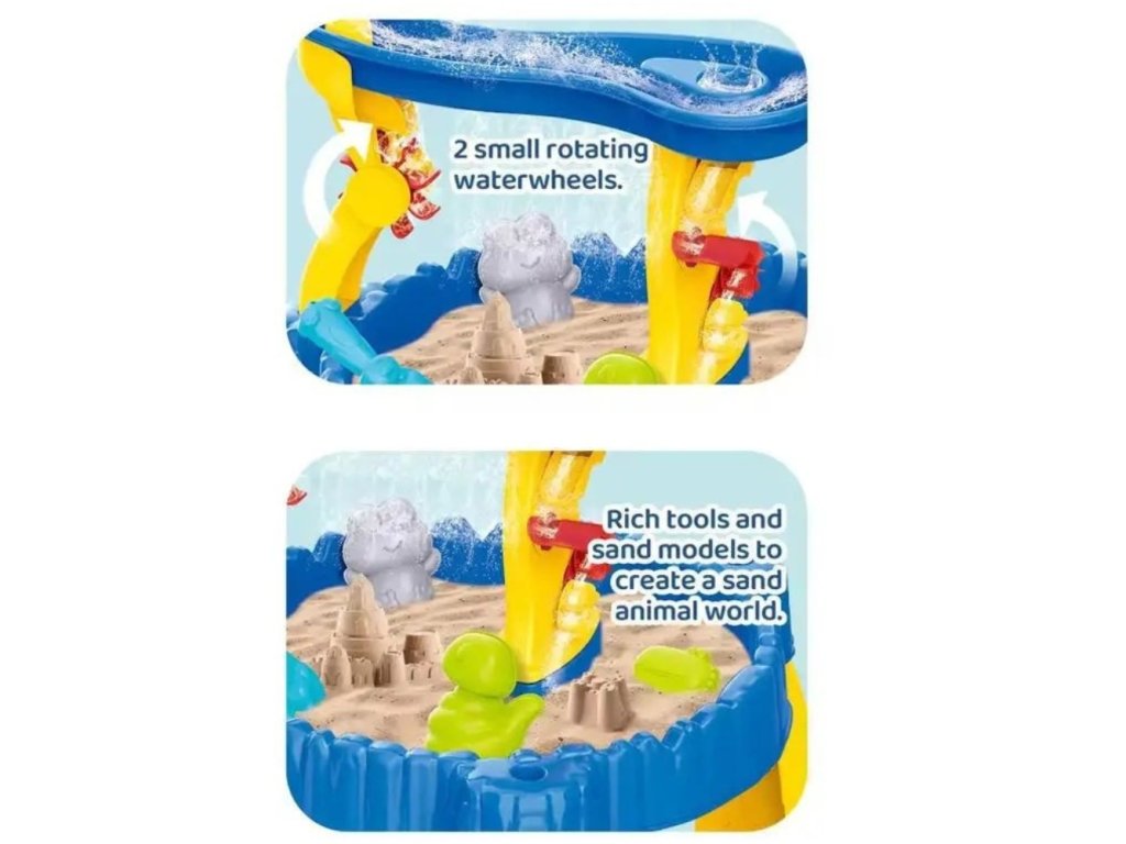 Stolová súprava na piesok a vodu 2 v 1 je skvelou voľbou pre deti, ktoré milujú kreatívnu hru s vodou a pieskom. Stolík s mnohými interaktívnymi prvkami poskytuje hodiny vzdelávacej a zmyslovej zábavy na záhrade aj doma.