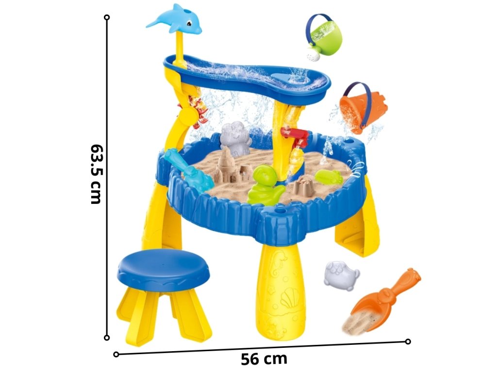 WOOPIE Vodný stôl XL so stoličkou 2v1 Pieskovisko Delfín 12el.