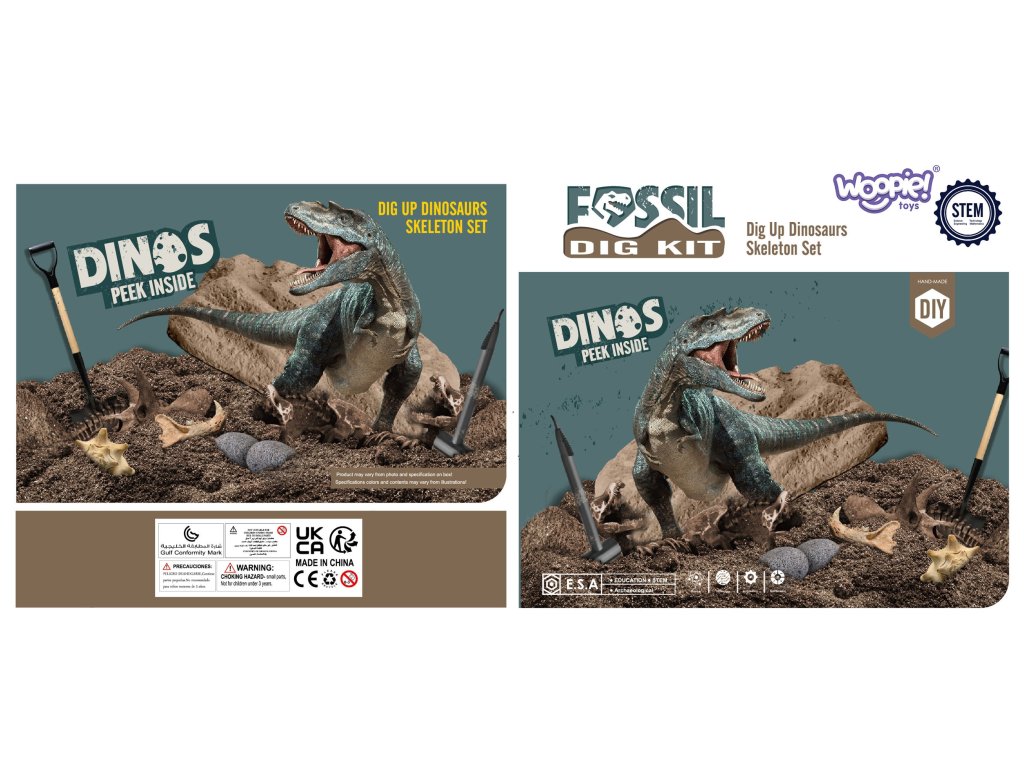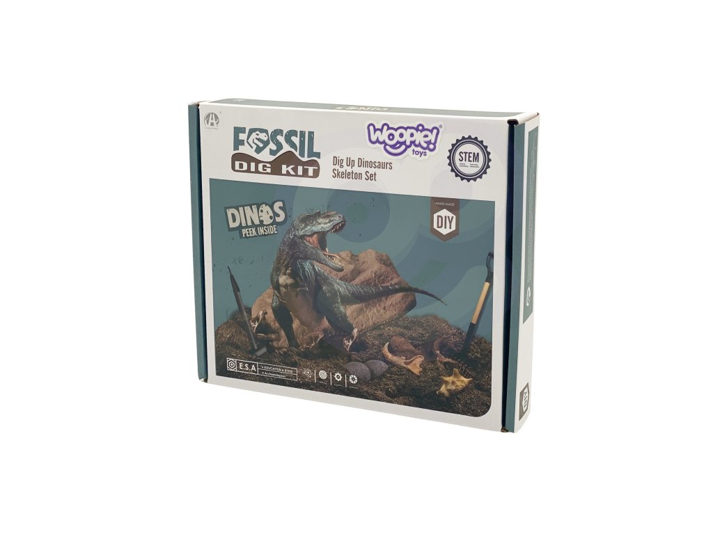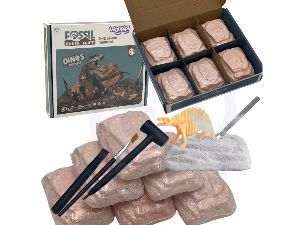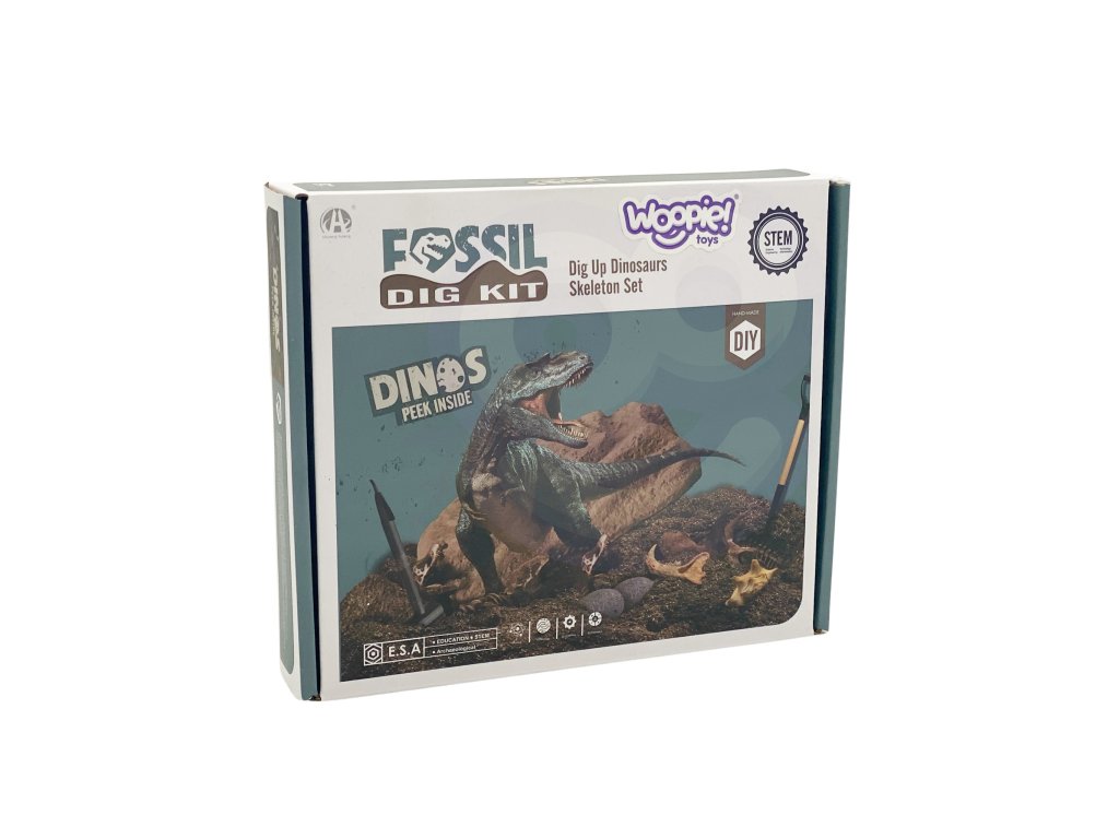 Súprava Fossilvykopávať zo značkyWOOPIE je fantastický darček pre deti, ktoré sa zaujímajú o dinosaury. Hračka vám umožní cítiť sa ako skutočný paleontológ,vykopávanie skamenelín a objavovanie dinosaurích kostí. Sada obsahuje až6 dinosaurov na vykopanie! S priloženými nástrojmi na kopanie, ťukanie, kefovanie a skladanie môžu deti stráviťmnoho hodín vzdelávacej zábavy, inšpirovať sa prírodnými vedami a rozvíjať svoje praktické zručnosti a myslenie. Perfektný darček pre chlapcov aj dievčatá!