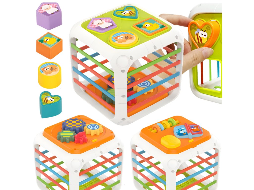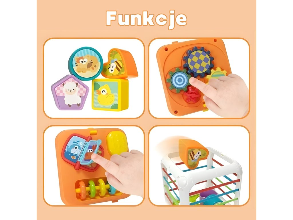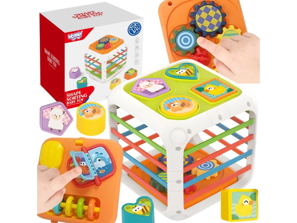 Montessori vzdelávacia senzorická kockaFlexibilný triedič 4v1 od značkyWOOPIE Baby, je dokonalou hračkou, ktorá spája tvorivú hru s učením a rozvojom zručností vášho dieťatka! Štyri rôzne aktivity - triedič tvarov, manipulačný panel, kolieska a vyťahovacie bloky - podnecujú zvedavosť a podporujú experimentovanie počas hry. Flexibilnýgumičky abloky s rôznymi tvarmi vyzývajú dieťa, aby sa ich dotýkalo, porovnávalo ich a objavovalo rozdiely medzi jednotlivými dielikmi, čo podporuje rozvoj zmyslov. Hračka bola navrhnutá s ohľadom na bezpečnosť batoliat od cca.18 mesiacov a vyrobené z materiálov vhodných pre deti. Je to skvelá voľba na každodennú hru aj ako vzdelávací darček, ktorý spája učenie so zábavou!