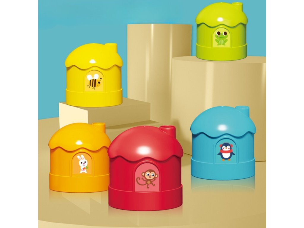 - - Zahrnuté5 farebných kontajnerov/domčekov s roztomilými samolepkami zvierat