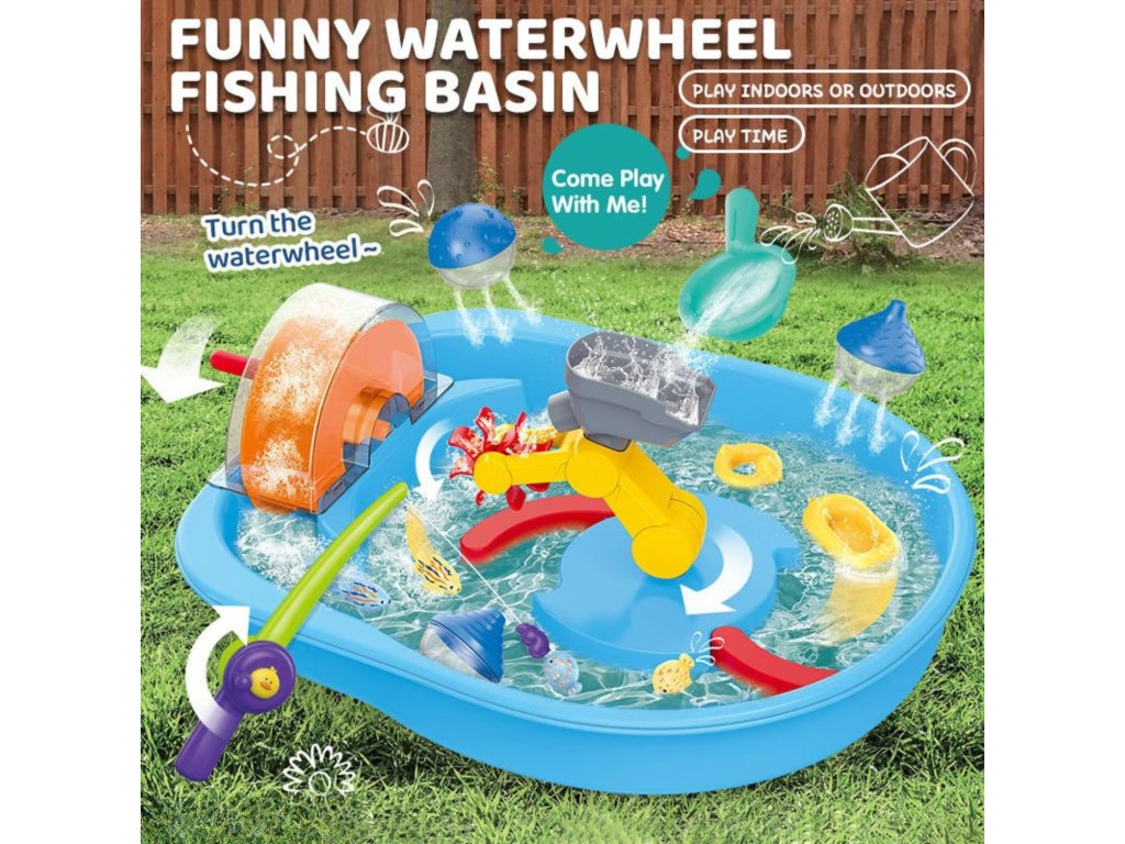 Súprava hračiek do vody s vodným kolesom a príslušenstvom - Zábavná rybárska nádrž s vodným kolesom!