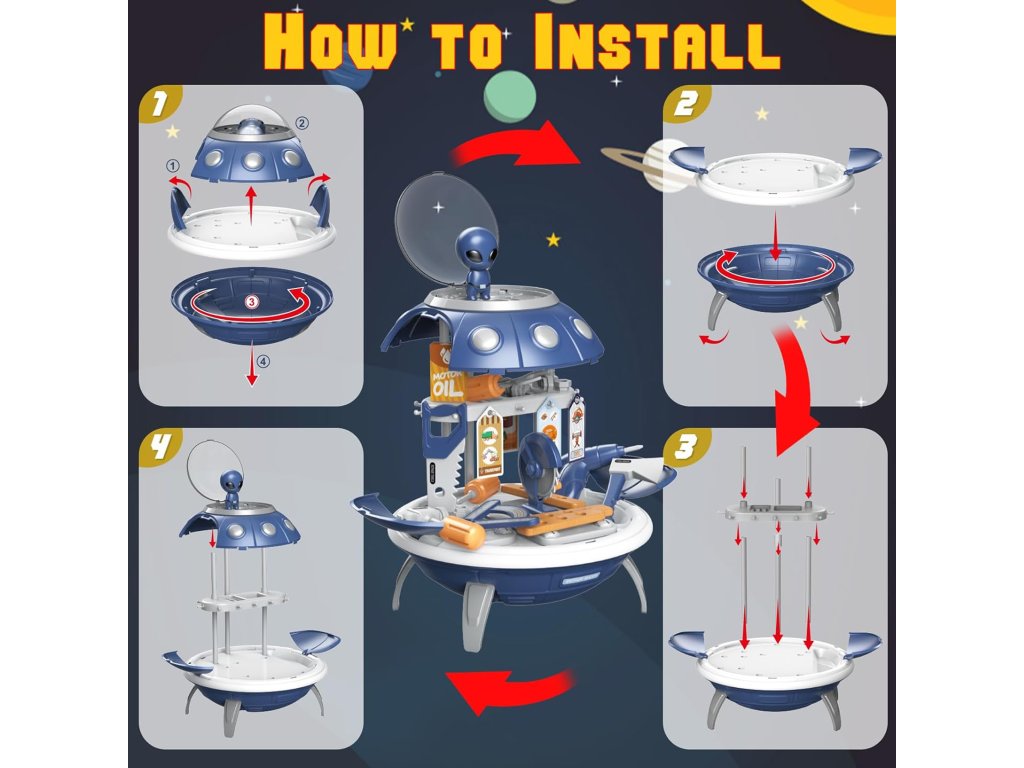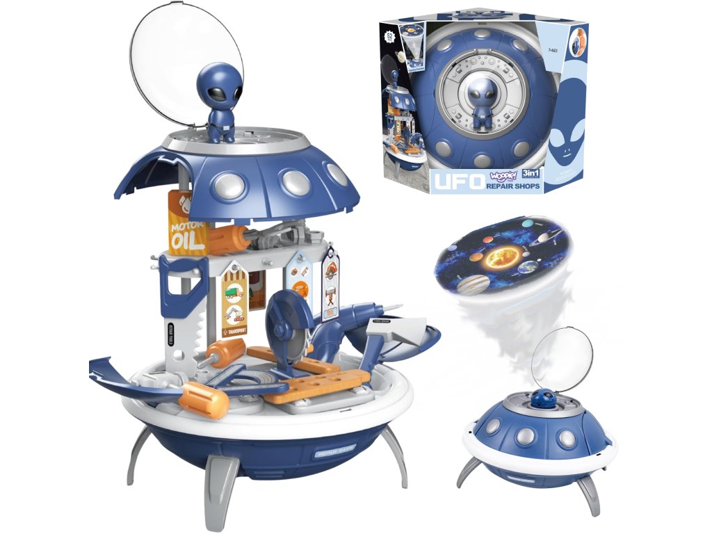 Workshop UFOod značkyWOOPIE je vesmírna súprava pre každé dieťa! Hračka má3 funkcie. Môžete zahrnúťprojektor a naučiť sa názvy planét. Môže sa používať ako štýlovábatoh s Marťanom. Pri nosení batohuhlava marťan sa voľne pohybuje za sklom lode. Najdôležitejšou funkciou je však možnosť rozložiť vesmírnu loď na superworkshop. Dieťa môžestelesňujú získajte v DIY na Marse a bavte sa spolu s priateľmi. Sada obsahuje až52 položiekfunkcia batohu vám umožní nosiť v dielni všetko, čo potrebujete. Funkcia batohu vám umožnívziať kamkoľvekvlastnú prenosnú dielňu.Hranie rolí a napodobňovanie súťaží rozvíja povedomie vášho dieťaťa a stimulujepredstavy ikreativita.