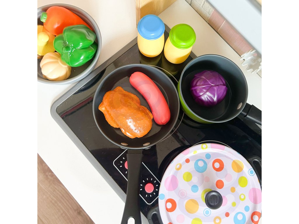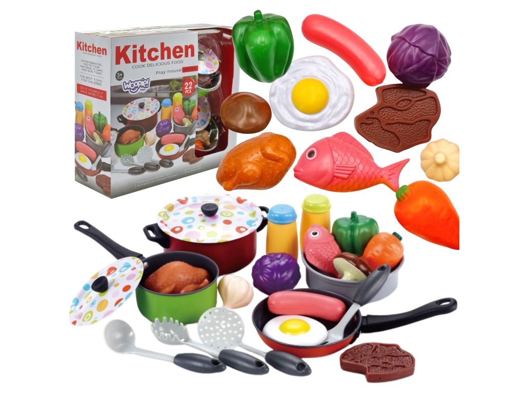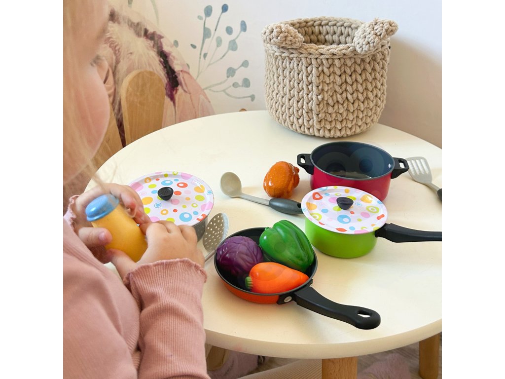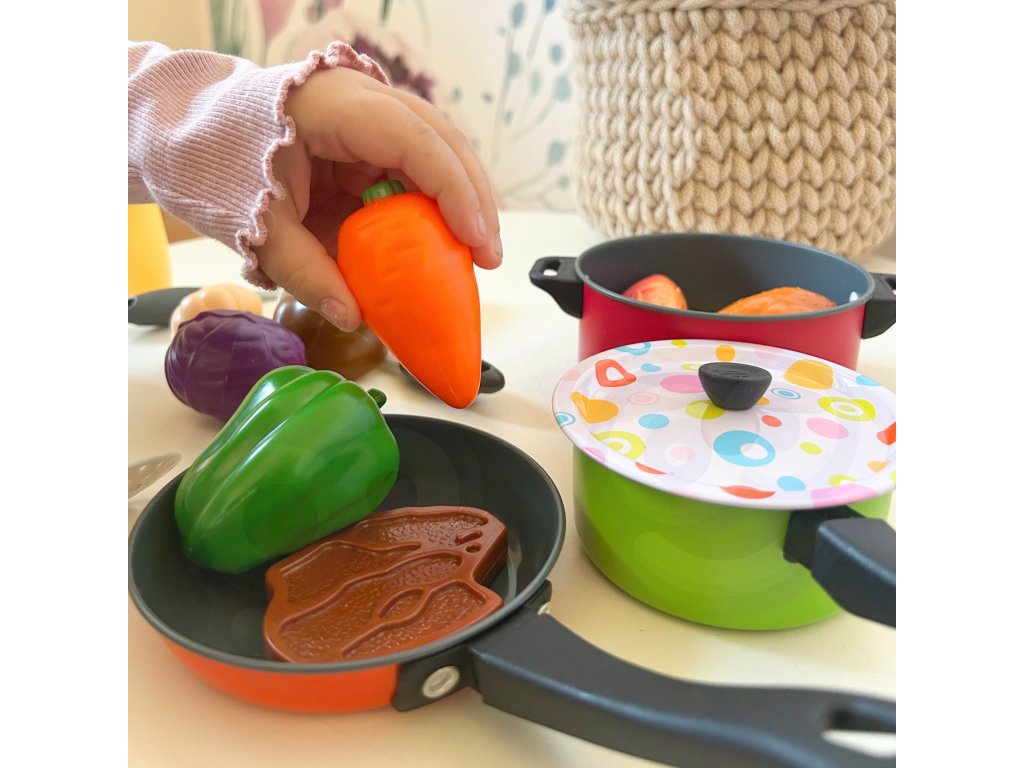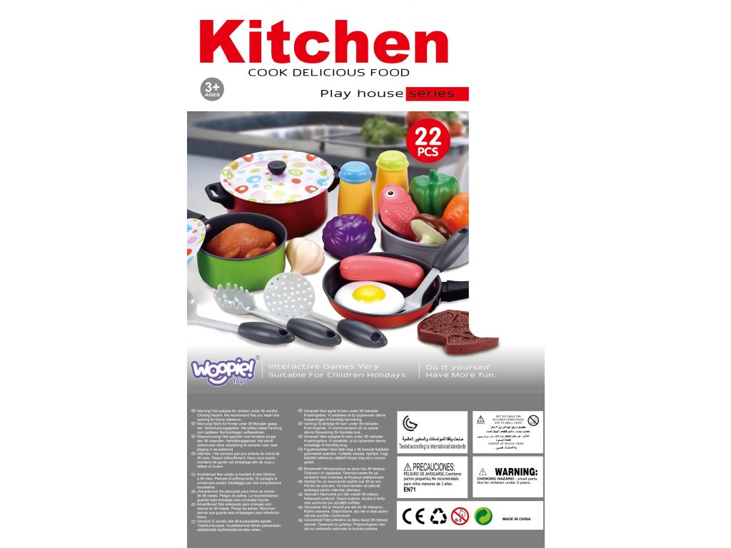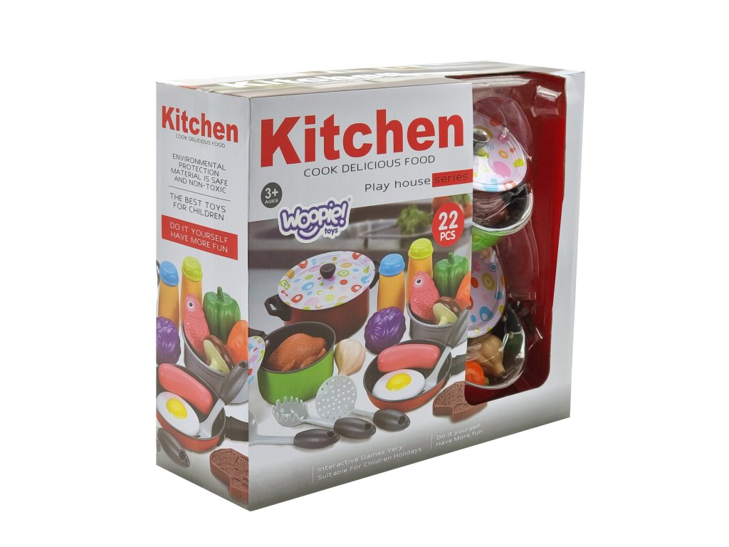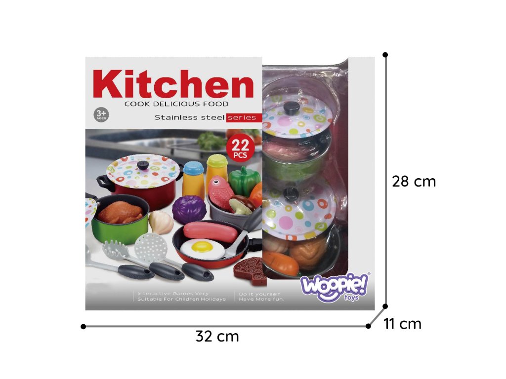 Veľká kuchárska súprava značkyWoopie je toliečiť pre každéhomalý kuchár. Každé batoľanapodobňuje svojich rodičov, súborWoopie umožnívlastný riad ipríprava vlastných jedál. Všetky položkyvyrobené so starostlivosťou o každom detaile. Máme tamhrniec ipanvicaktoré majú svojeveko, okrem tohopanvice,miska,potraviny anáčinie. Súprava určená pre detiod 3 rokov.