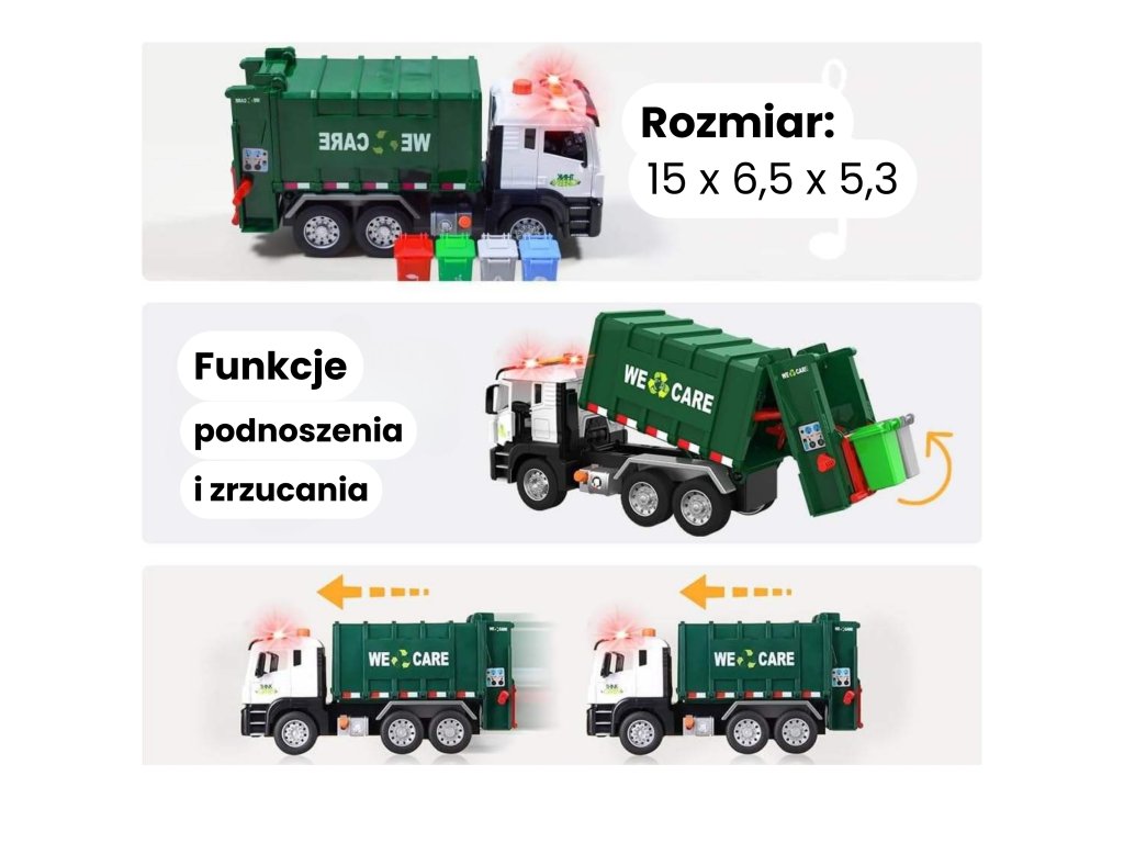 Vďaka realistickým funkciám a vzdelávacím doplnkom sa toto smetiarske auto stane nielen obľúbenou hračkou, ale aj užitočným nástrojom na učenie každodenných environmentálnych návykov.