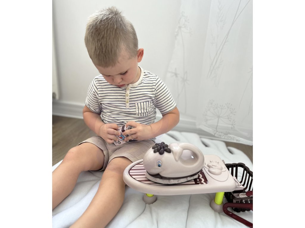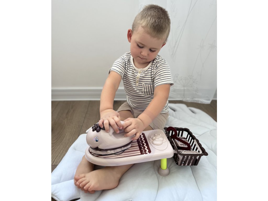 Žehliaca súprava od značkyWOOPIEposkytne vášmu dieťaťu veľa zábavy vďaka možnosti hrať úlohu dospelého . Súprava obsahuježelezov tvare veľryby, žehliaca doska, kôš na bielizeň, dvavešiaky a dve baleniaprací prášok.Iron je hračkabezpečné pre deti,pretože sa nezahrieva. Je vybavený mnoho funkciíktoré hru spestrujú: žiariacesvetlo LED aúčinkyzvuk. Hračka funguje aj bez naplnenia vodou. Je to ideálna súprava pre deti, ktoré rady napodobňujú svojich rodičov pri každodenných činnostiach.
