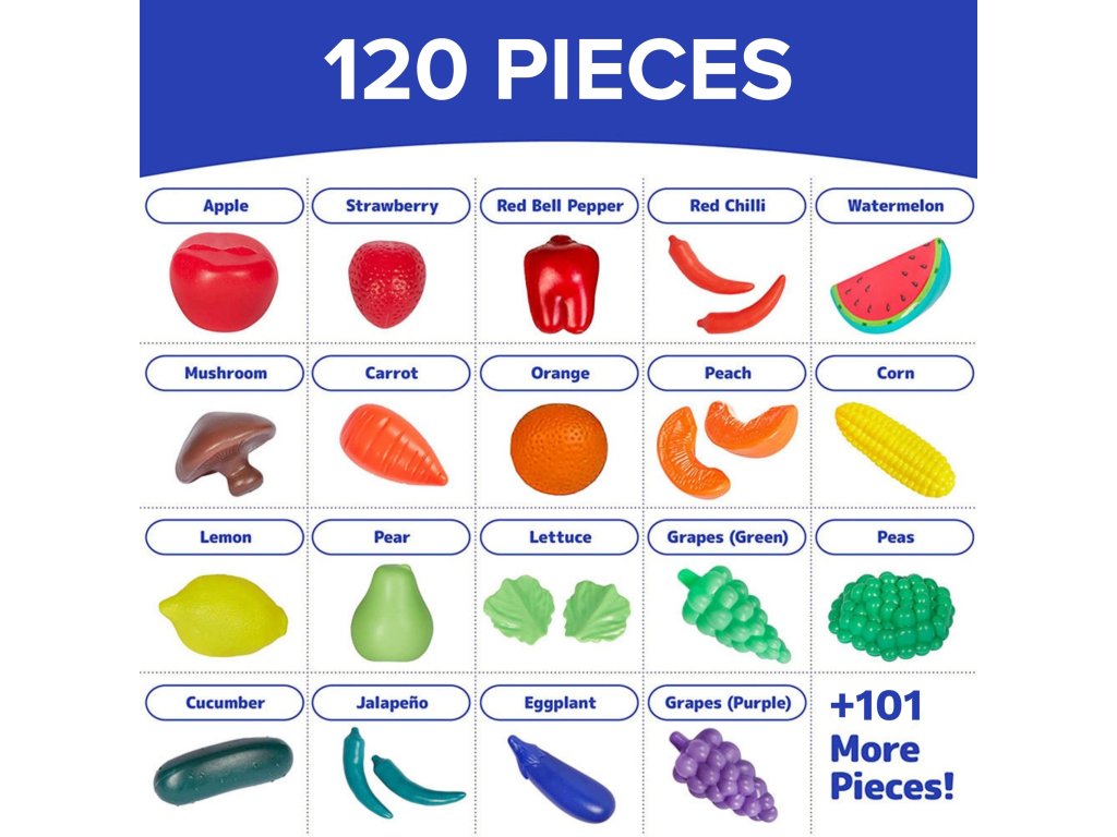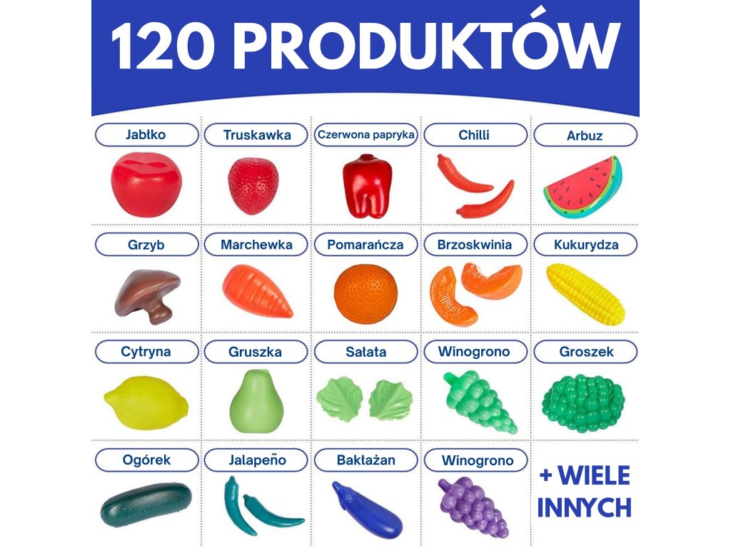 - - 120 prvkov - ovocie, zelenina, chlieb, občerstvenie, nápoje, obaly.