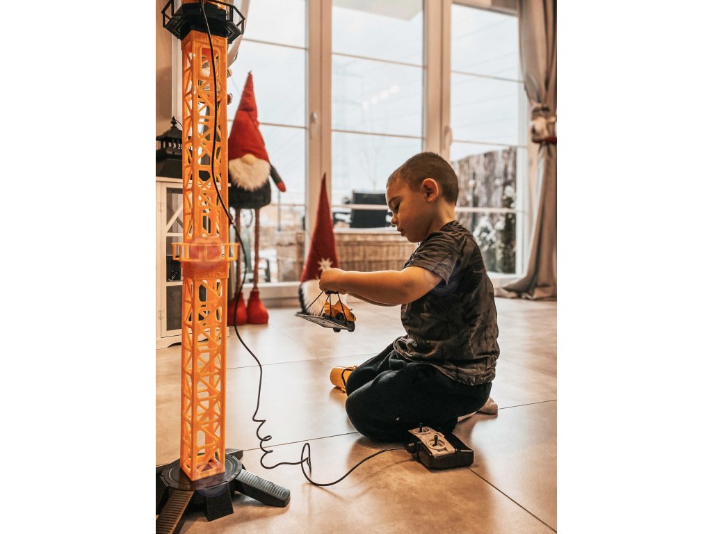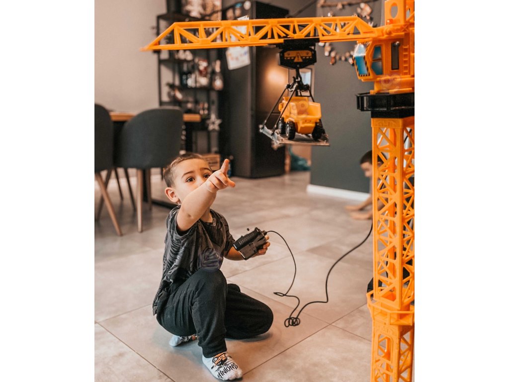 Žeriav značkyWoopie umožní vášmu dieťaťu stať sa skutočnýmmanažér stránky! Dieťa dostane na hranie stavebný žeriavovládané diaľkovým ovládaním.Súprava obsahuje príslušenstvo, ktoré je nevyhnutné na každom stavenisku:nákladné vozidlo,rýpadlo,vedro alúč.Žeriav máúpravy: 2 úrovne výšky - 103 a 64 cm.Žeriavplne otáča sa a má pozastavenéplatformaktoré môžu byťzvýšenie iopustite stránku astlačte na stránke rameno žeriav. Tieto funkcie umožňujúplné využitie hračky, a okrem toho sa plošina môže premeniť na vedro alebo nosník. Hračka je ideálna na hraniedomov alebomimo!