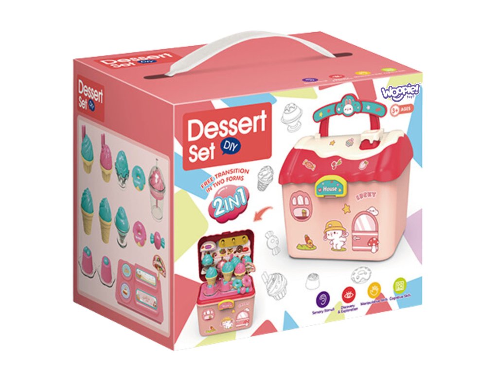 Cukrovinky v kufríku značkyWoopie je jedinečná hračka pre malých cukrárov. Táto očarujúca súprava prenesie deti do sveta sladkých radostí plného kreativity a predstavivosti. Súprava obsahuje všetkyobľúbené pochúťky ako zmrzlina, šišky, zákusky, torty a mnoho ďalšieho. Vďaka rôznorodým prvkom sa deti môžu vžiť do úlohy skutočných cukrárov a vytvoriť si vlastné virtuálne cukrárske diela.